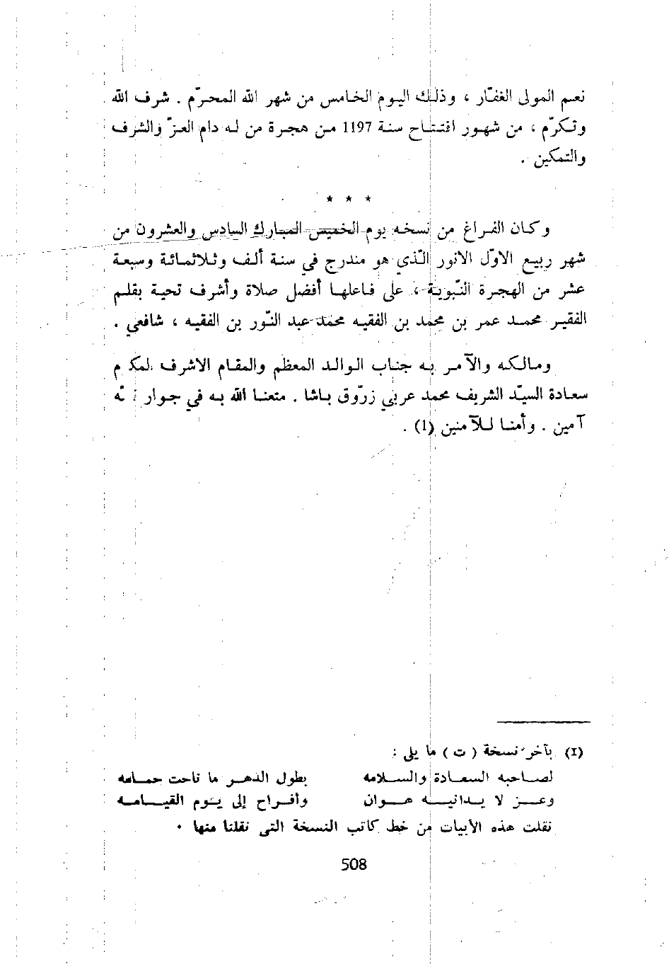 نعم المولى الغفار، وذلك يوم الخامس من شهر الله الحرام. شرف الله وتكرم، ومن شهور افتتاح سنة 1197 من هجرة من له دام العز والشرف والتمكين.