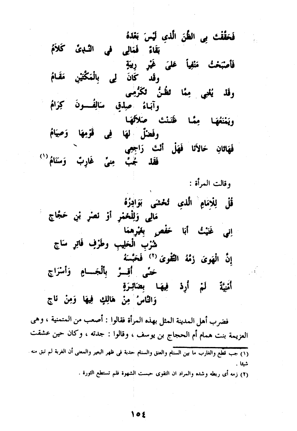 فضرب أهل المدينة المثل بهذه المرأة فقالوا: أصعب من المتمنية، وهى العزيمة بنت همام أم الحجاج بن يوسف، وقالوا: جدته، وكان حين عشقت
