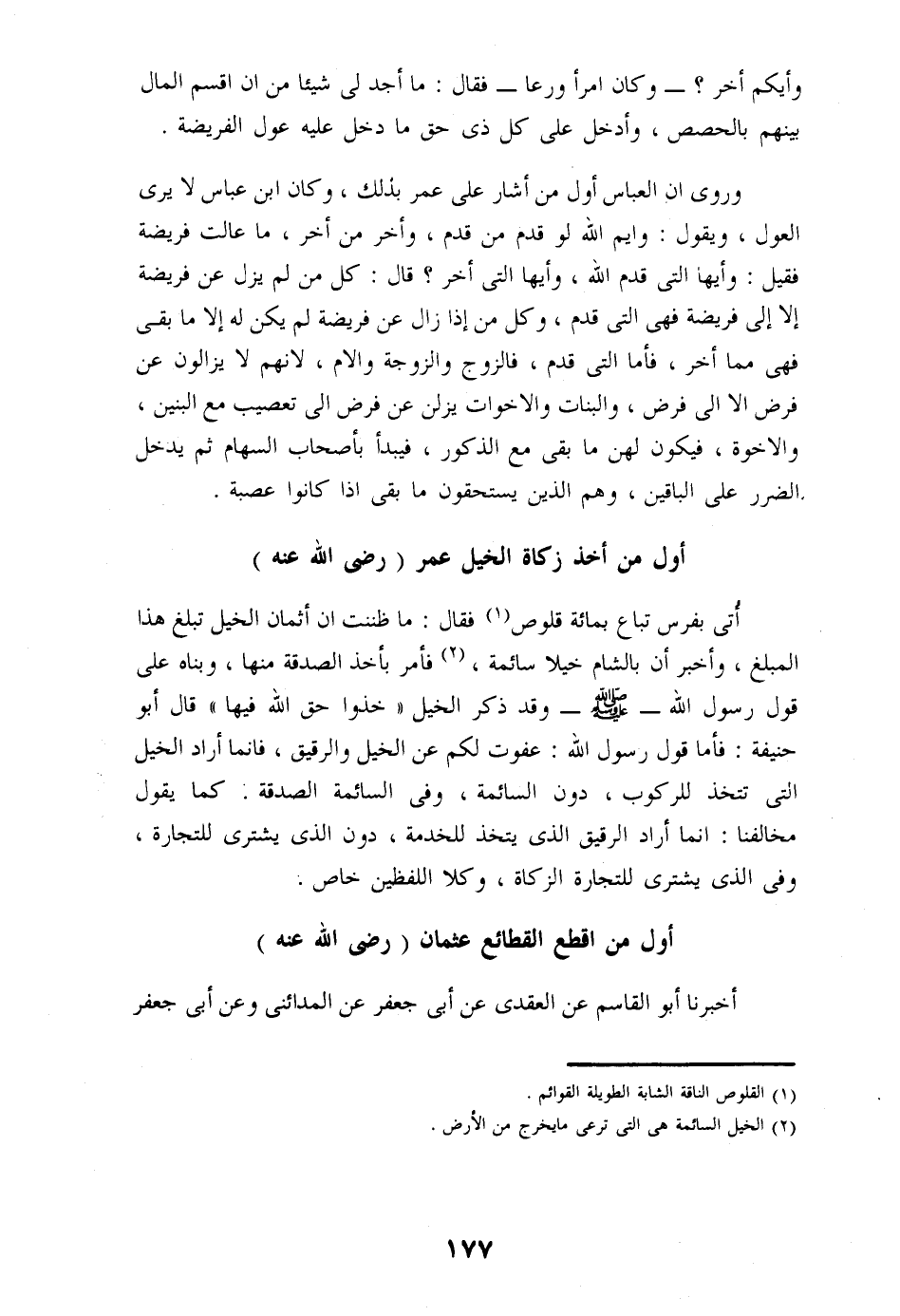أول من أخذ زكاة الخيل عمر (رضى الله عنه)