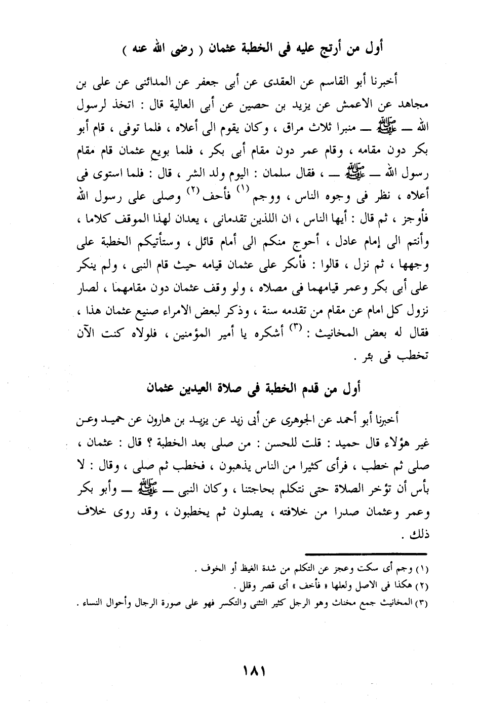 أول من قدم الخطبة فى صلاة العيدين عثمان