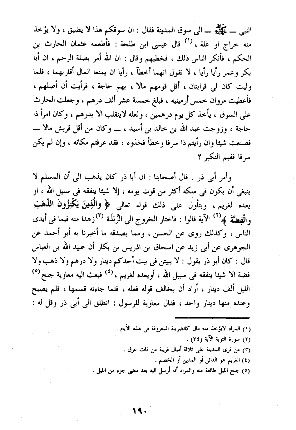 وأمر أبى ذر. قال أصحابنا: ان أبا ذر كان يذهب الى أن المسلم لا ينبغى أن يكون فى ملكه أكثر من قوت يومه، إلا شيئا ينفقه فى سبيل الله، او يعده لغريم، ويتأول على ذلك قوله تعالى وَالَّذِينَ يَكْنِزُونَ الذَّهَبَ وَالْفِضَّةَ