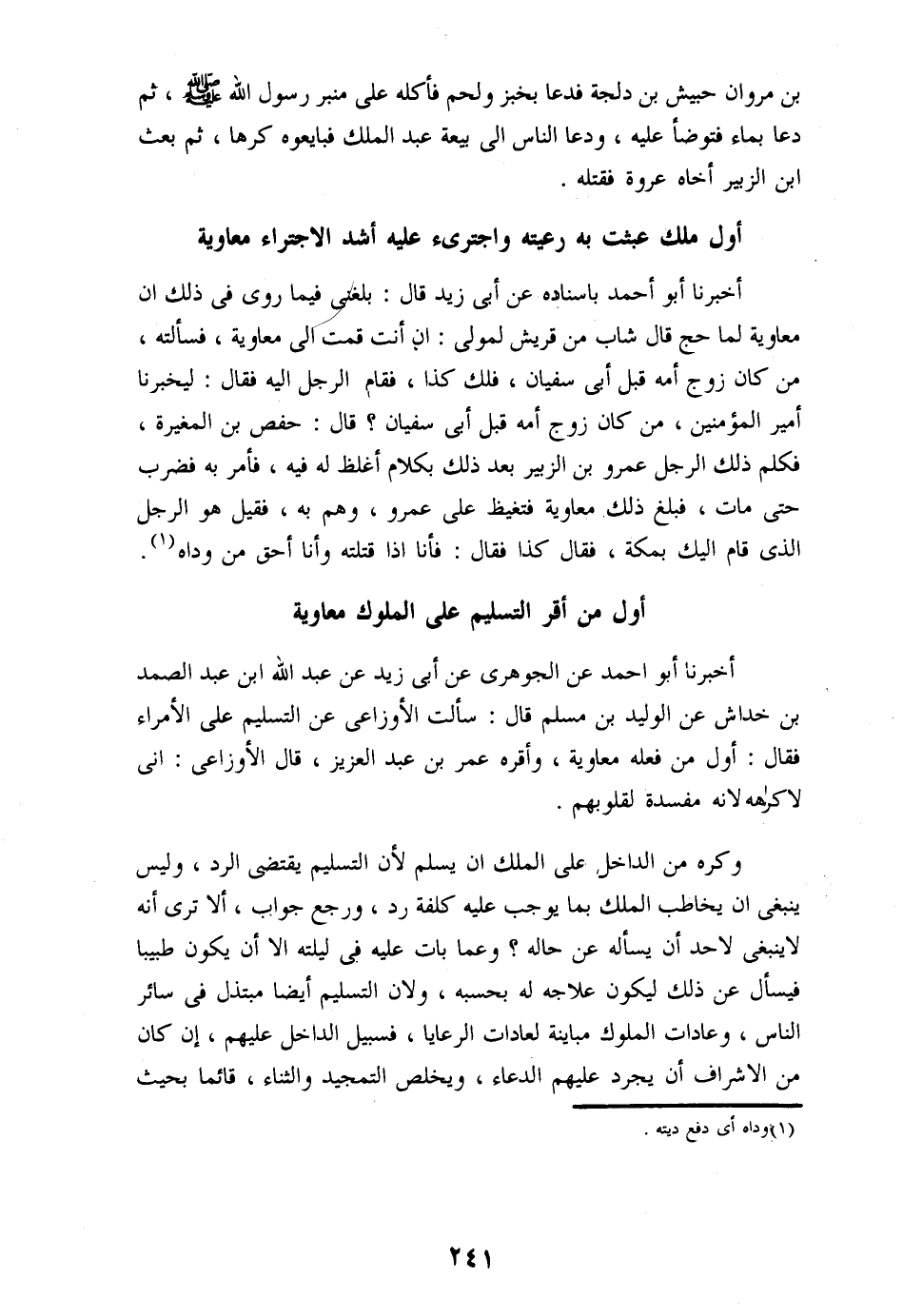 أول من أقر التسليم على الملوك معاوية