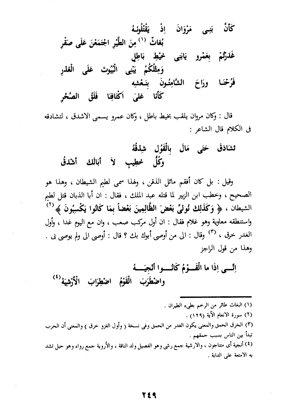 وقيل: بل كان أفقم مائل الذقن، ولهذا سمى لطيم الشيطان، وهذا هو الصحيح، وخطب ابن الزبير لما قتله عبد الملك، فقال: ان أبا الذبان قتل لطيم الشيطان، وَكَذلِكَ نُوَلِّي بَعْضَ الظَّالِمِينَ بَعْضاً بِما كانُوا يَكْسِبُونَ