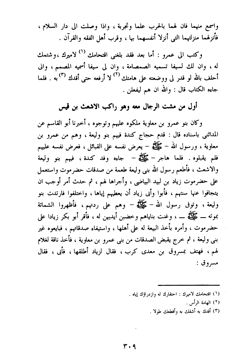 أول من مشت الرجال معه وهو راكب الاشعث بن قيس
