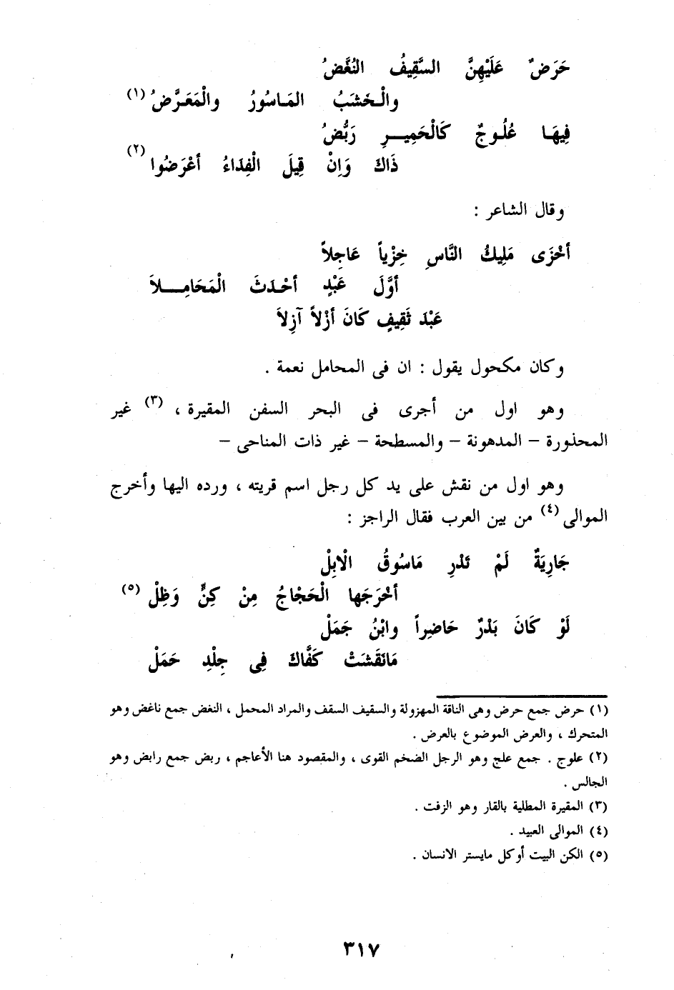 عبد ثقيف كان أزلا آزلا وكان مكحول يقول: ان فى المحامل نعمة.