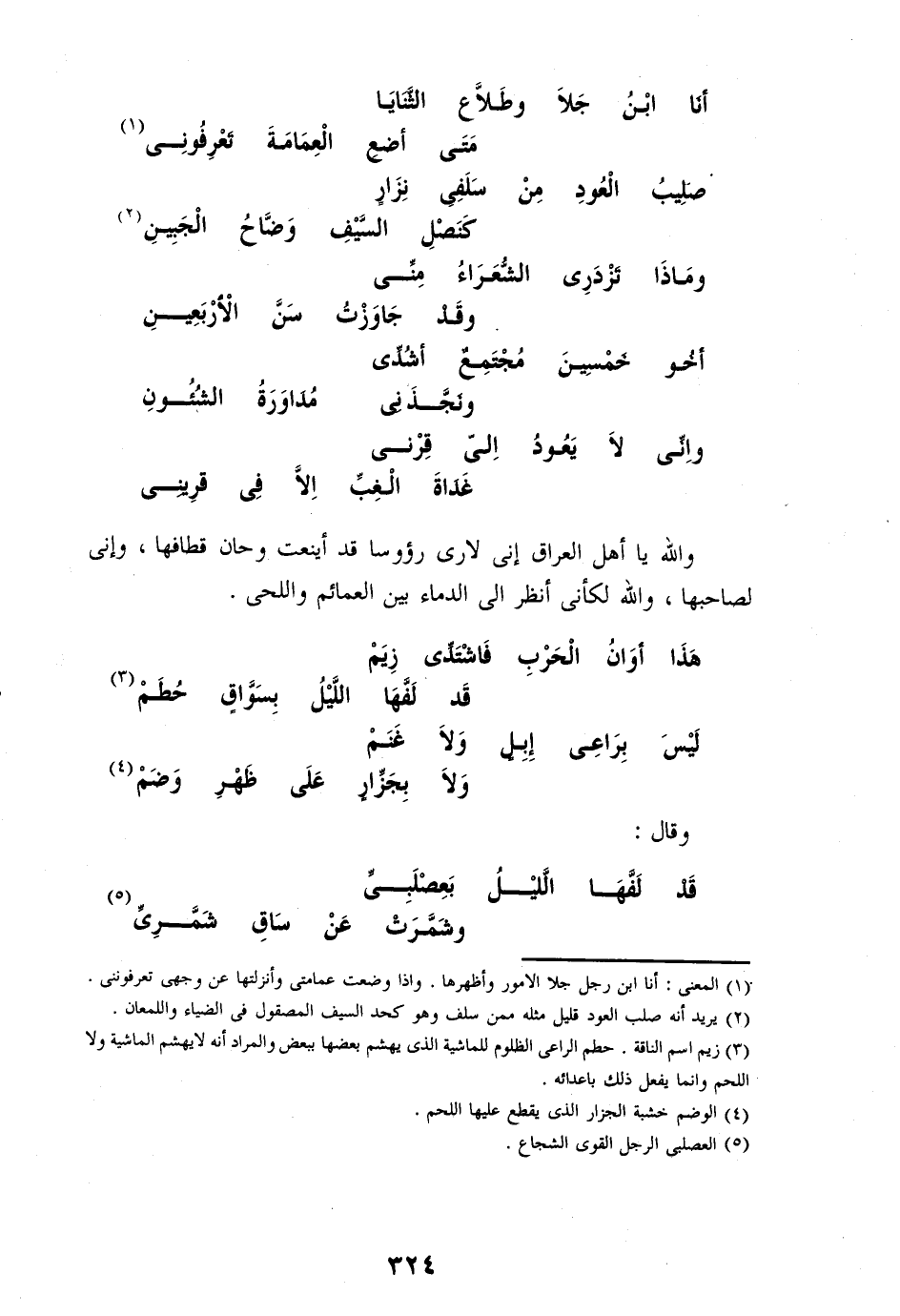 أنا ابن جلا وطلّاع الثّنايا ... متى أضع العمامة تعرفونى «1»