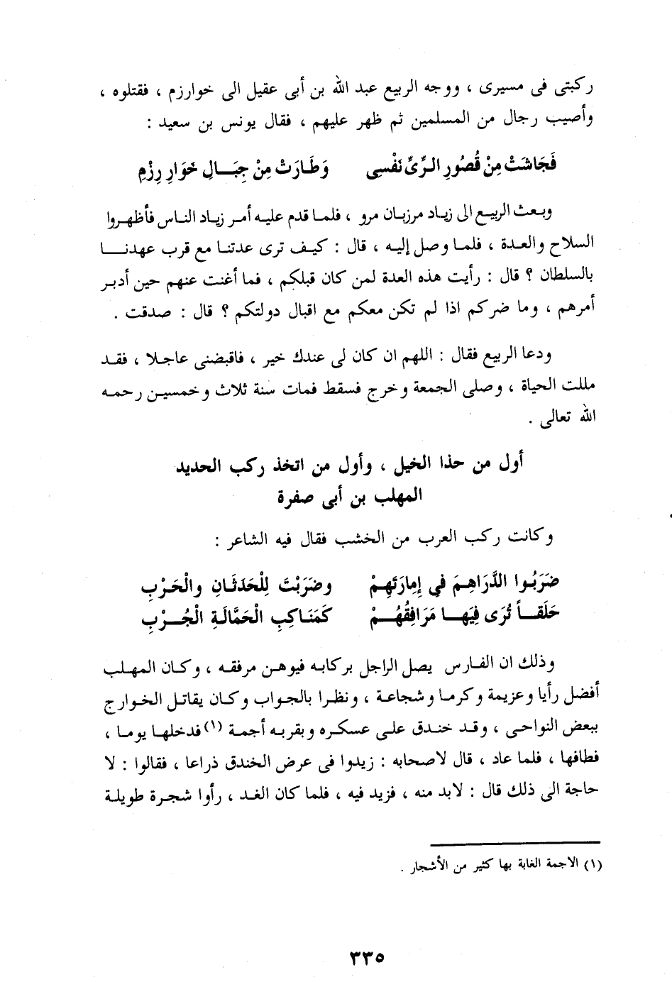 ركبتى فى مسيرى، ووجه الربيع عبد الله بن أبى عقيل الى خوارزم، فقتلوه، وأصيب رجال من المسلمين ثم ظهر عليهم، فقال يونس بن سعيد: