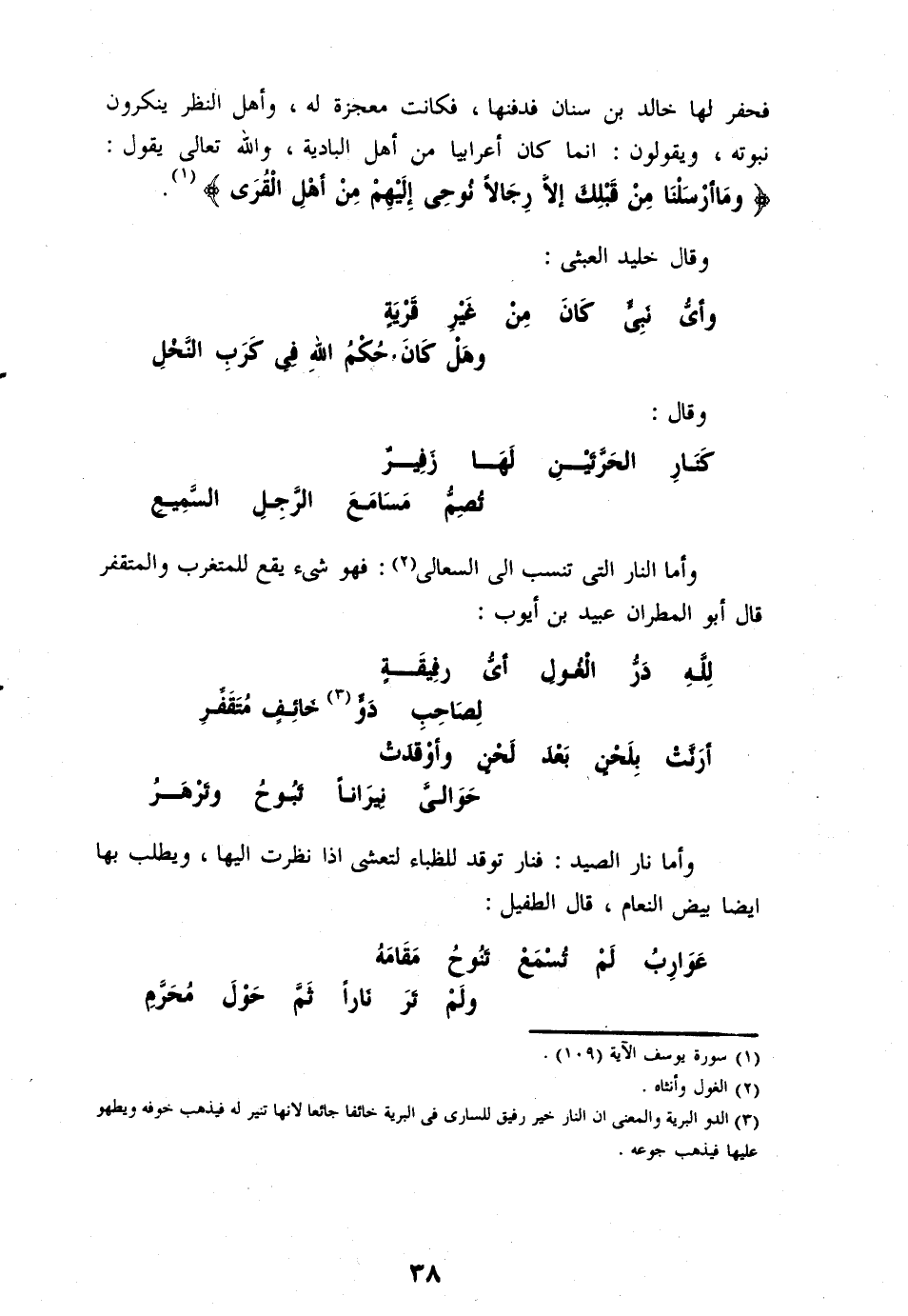 وأما النار التي تنسب الى السعالى «2» : فهو شيء يقع للمتغرب والمتقفر قال أبو المطران عبيد بن أيوب:
