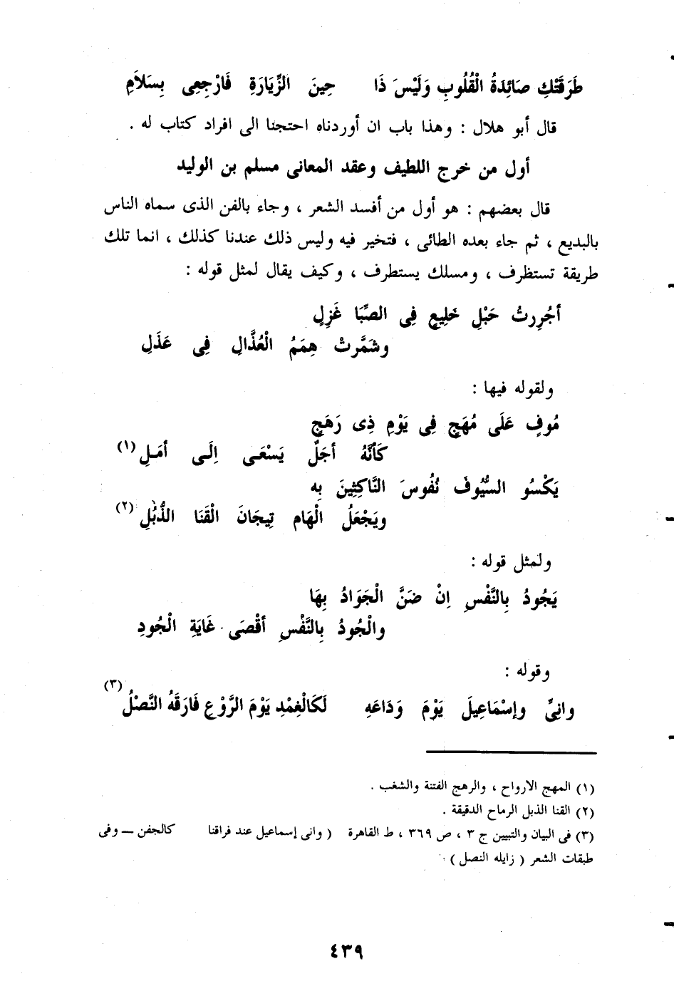 أول من خرج اللطيف وعقد المعانى مسلم بن الوليد