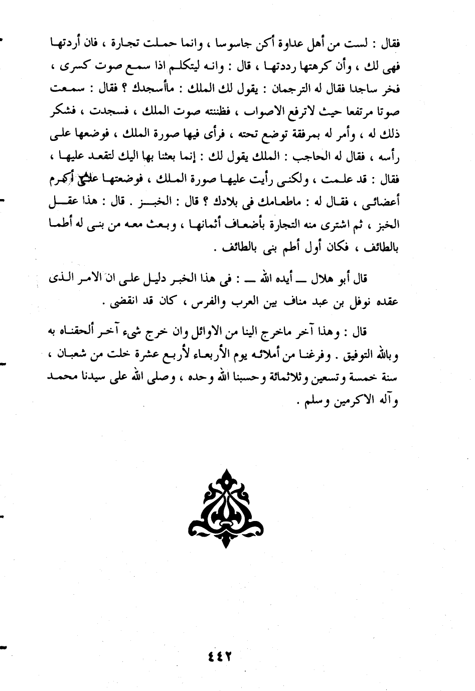 قال أبو هلال- أيده الله-: فى هذا الخبر دليل على ان الامر الذى عقده نوفل بن عبد مناف بين العرب والفرس، كان قد انقضى.