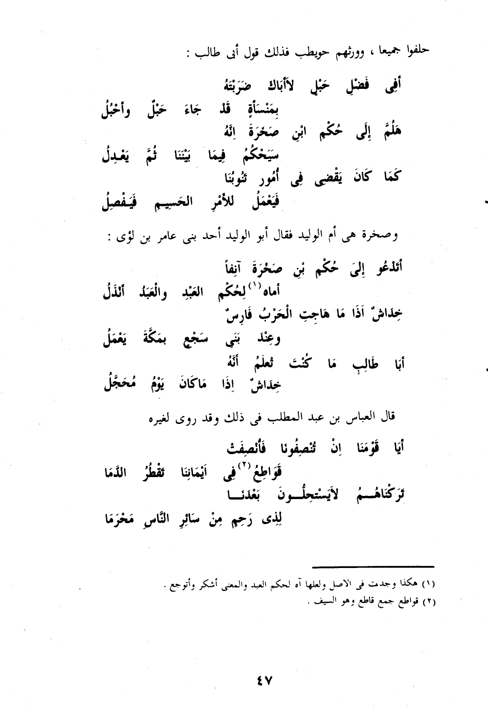 أيا قومنا ان تنصفونا فانصفت ... قواطع «2» فى ايماننا تقطر الدّما