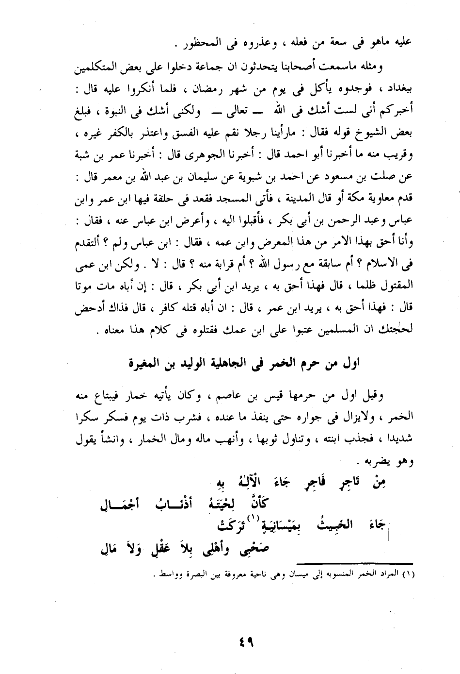 ومثله ما سمعت أصحابنا يتحدثون ان جماعة دخلوا على بعض المتكلمين ببغداد، فوجدوه يأكل فى يوم من شهر رمضان، فلما أنكروا عليه قال: