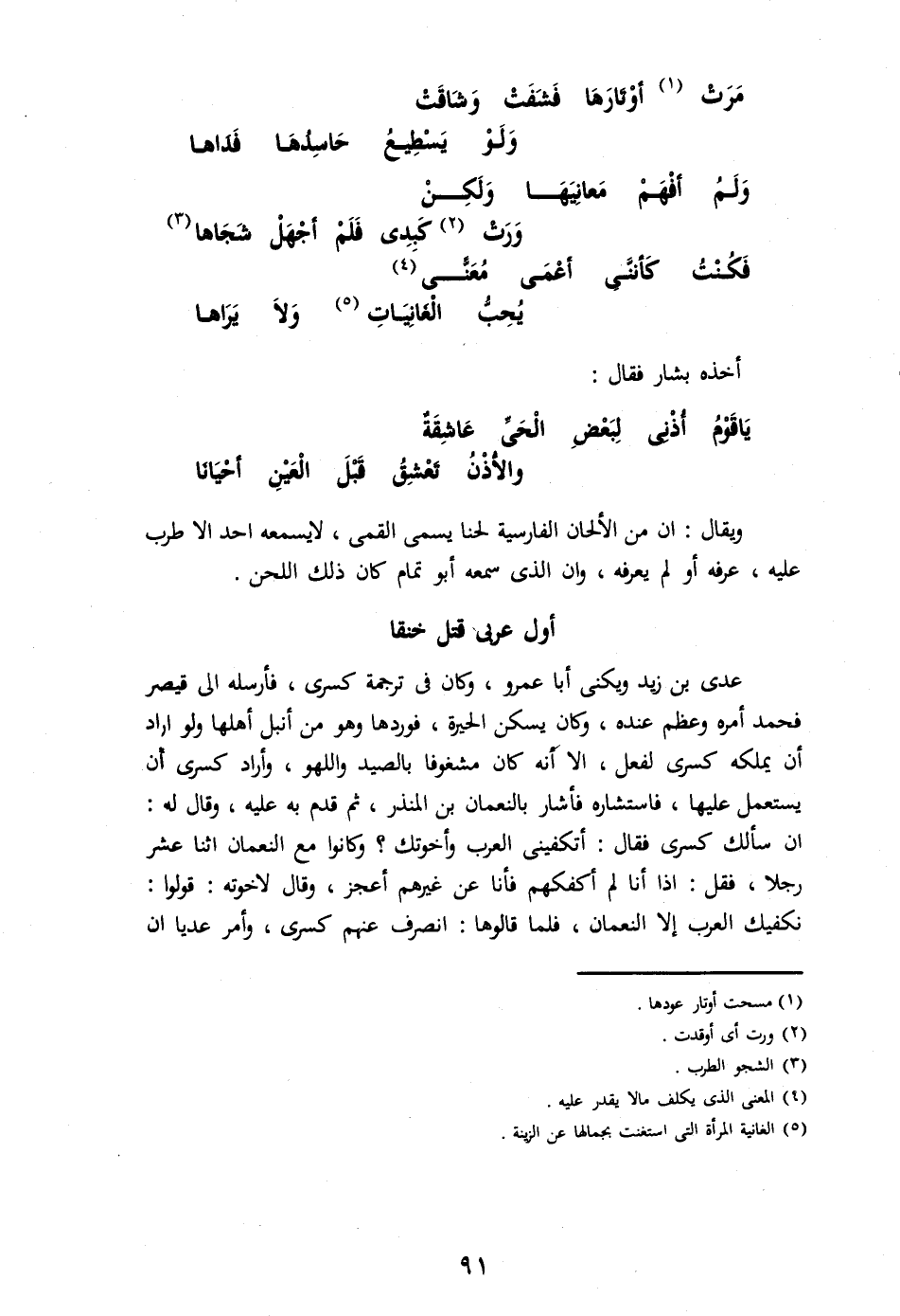 ويقال: ان من الألحان الفارسية لحنا يسمى القمى، لا يسمعه احد الا طرب عليه، عرفه أو لم يعرفه، وان الذى سمعه أبو تمام كان ذلك اللحن.