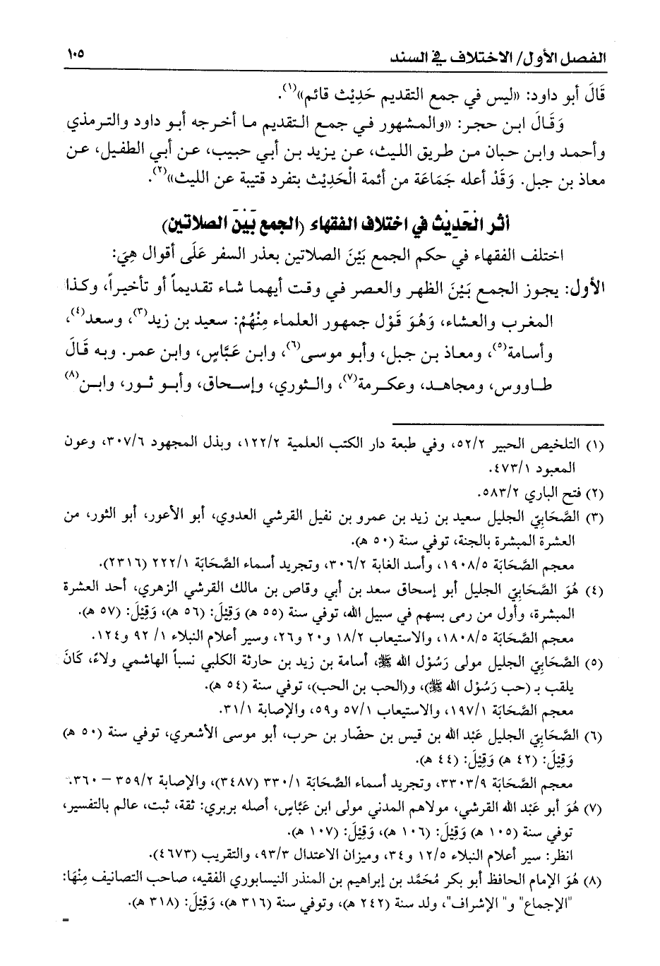 أثر الْحَدِيْث في اختلاف الفقهاء (الجمع بَيْنَ الصلاتين)