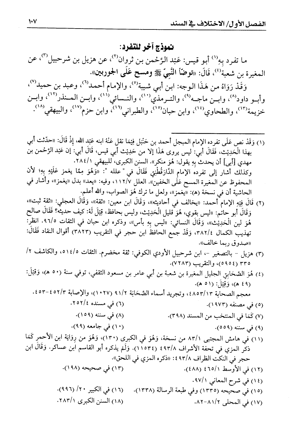 ما تفرد بِهِ (¬1) أبو قيس: عَبْد الرحمان بن ثروان (¬2)، عن هزيل بن شرحبيل (¬3)، عن المغيرة بن شعبة (¬4)، قَالَ: ((توضّأ النَّبِيّ - صلى الله عليه وسلم - ومسح عَلَى الجوربين)).
