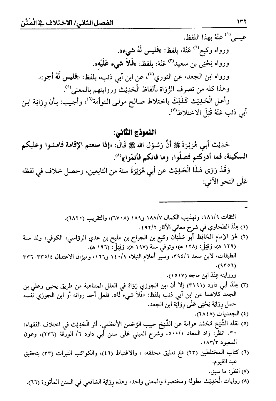 (¬5) نقله الشَّيْخ مُحَمَّد عوامة عن الشَّيْخ حبيب الرَّحْمَان الأعظمي. أثر الْحَدِيْث في اختلاف الفقهاء:30. انظر: زاد المعاد 1/ 500، وشرح العيني عَلَى سنن أبي داود 6/ الورقة (236)، وعون المعبود 3/ 183.