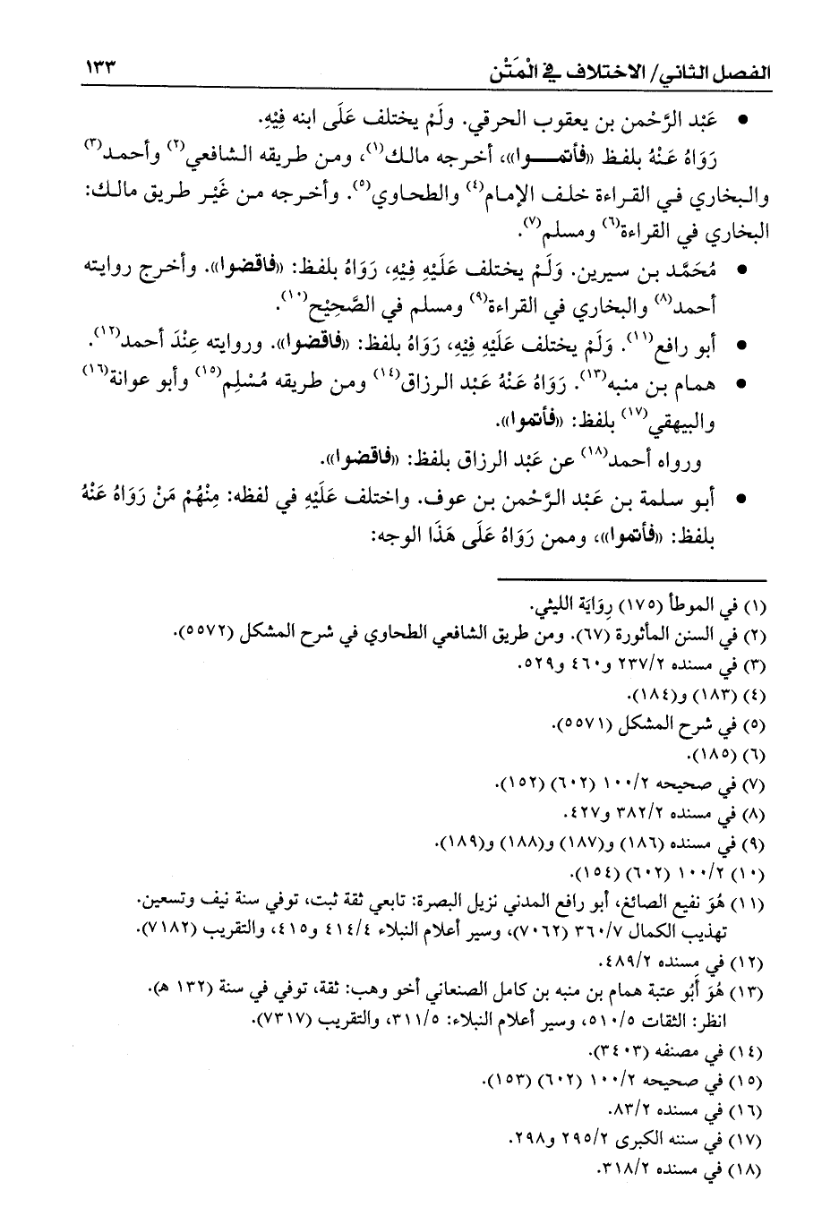 - أبو سلمة بن عَبْد الرَّحْمَان بن عوف. واختلف عَلَيْهِ في لفظه: مِنْهُمْ مَنْ رَوَاهُ عَنْهُ بلفظ: ((فأتموا))، وممن رَوَاهُ عَلَى هَذَا الوجه: