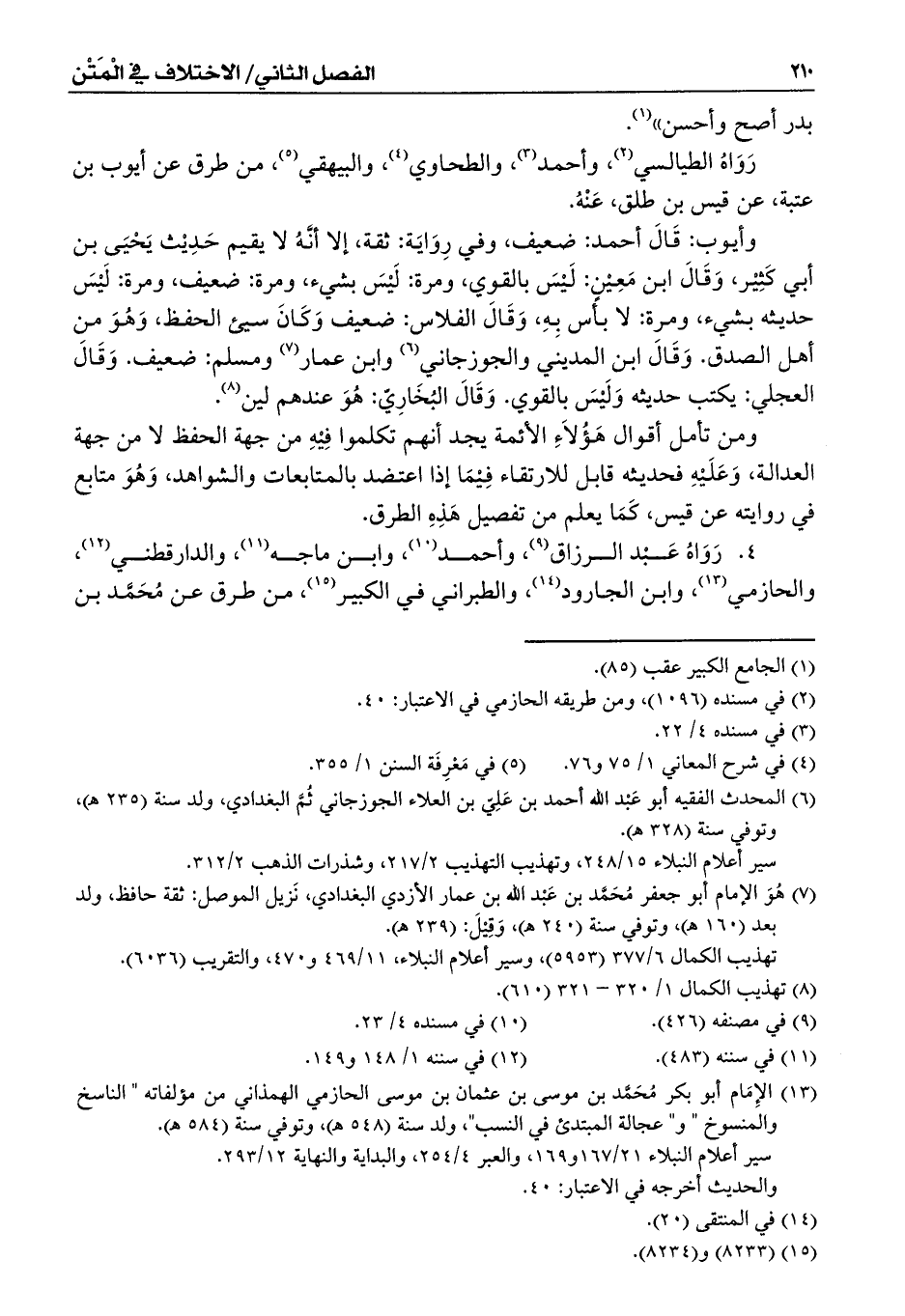 ومن تأمل أقوال هَؤُلاَءِ الأئمة يجد أنهم تكلموا فِيْهِ من جهة الحفظ لا من جهة العدالة، وَعَلَيْهِ فحديثه قابل للارتقاء فِيْمَا إذا اعتضد بالمتابعات والشواهد، وَهُوَ متابع في روايته عن قيس، كَمَا يعلم من تفصيل هَذِهِ الطرق.