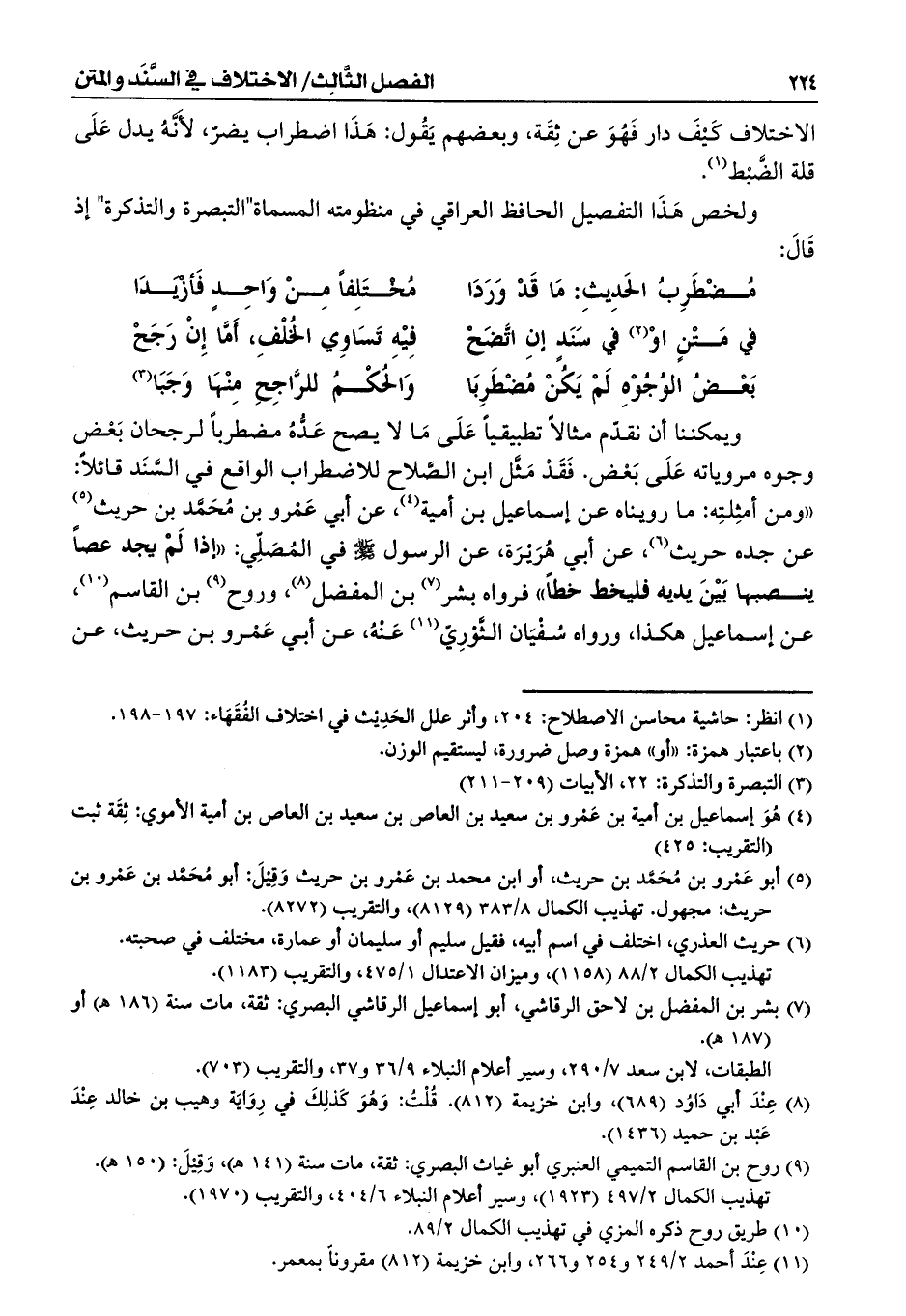 (¬1) انظر: حاشية محاسن الاصطلاح:204، وأثر علل الحَدِيْث في اختلاف الفُقَهَاء: 197 - 198.