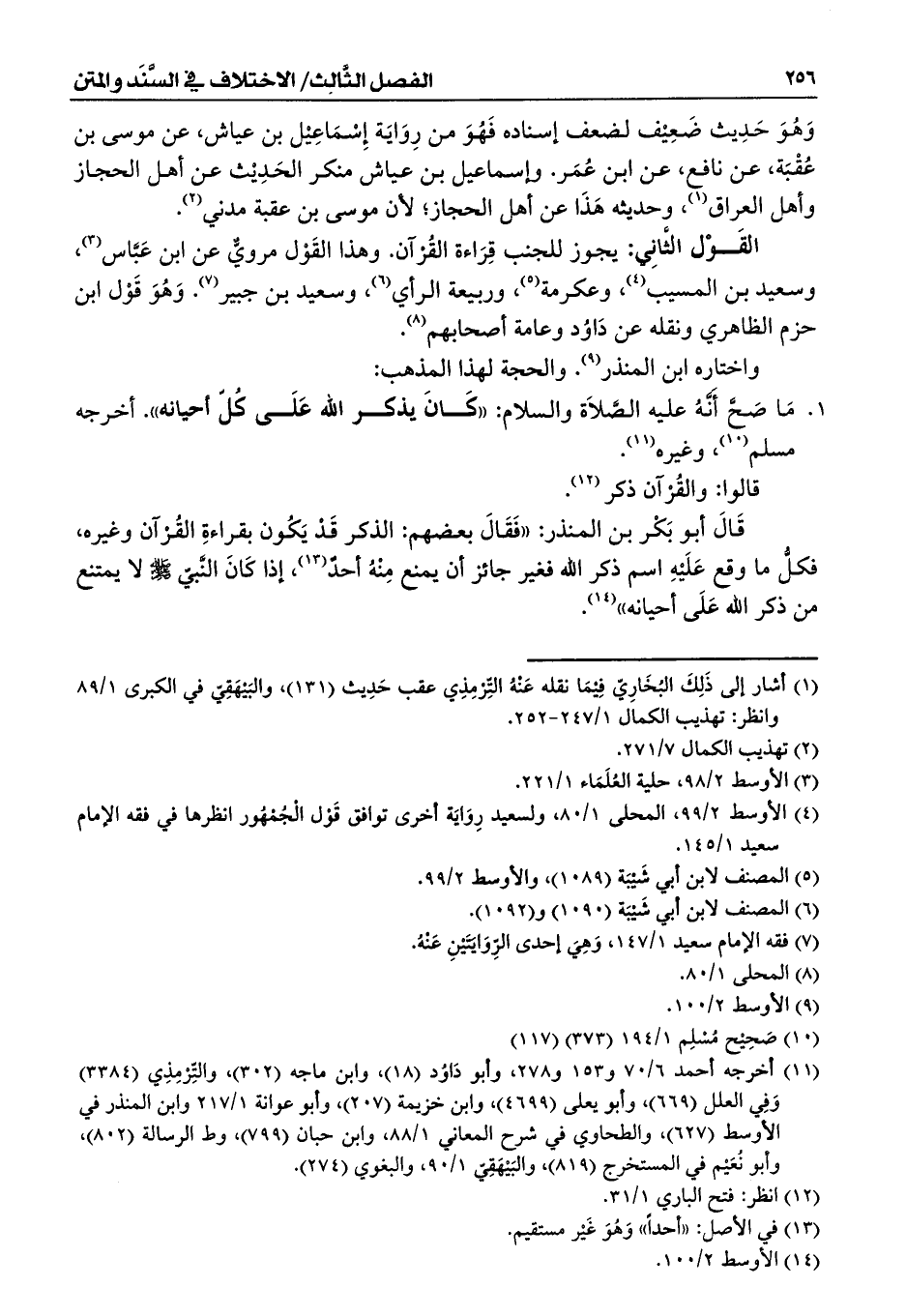 قَالَ أبو بَكْر بن المنذر: ((فَقَالَ بعضهم: الذكر قَدْ يَكُون بقراءةِ القُرْآن وغيره، فكلُّ ما وقع عَلَيْهِ اسم ذكر الله فغير جائز أن يمنع مِنْهُ أحدٌ (¬13)، إذا كَانَ النَّبيّ - صلى الله عليه وسلم - لا يمتنع من ذكر الله عَلَى أحيانه)) (¬14).