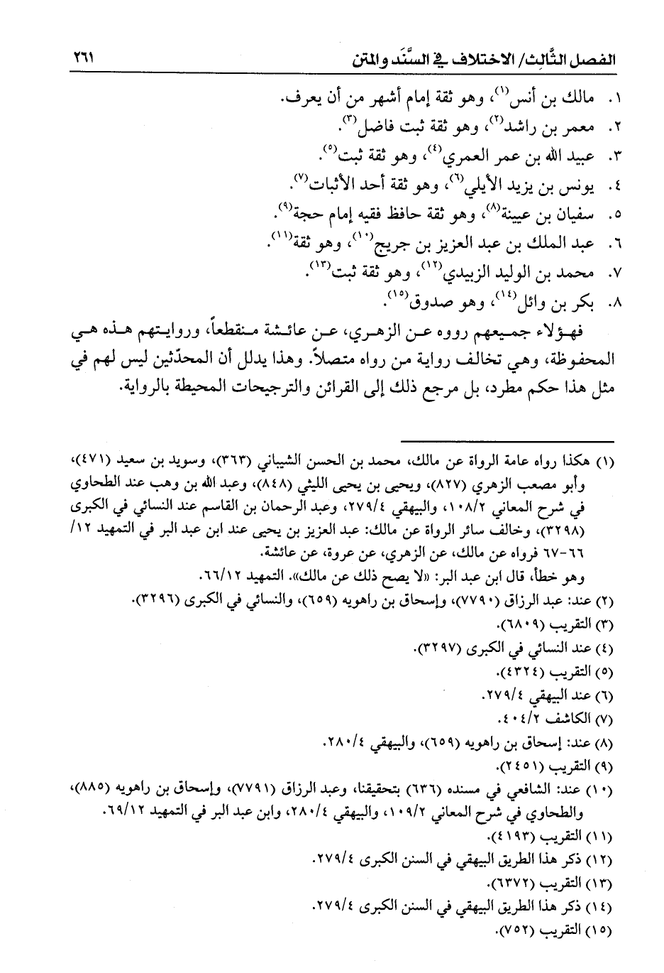 فهؤلاء جميعهم رووه عن الزهري، عن عائشة منقطعاً، وروايتهم هذه هي المحفوظة، وهي تخالف رواية من رواه متصلاً. وهذا يدلل أن المحدّثين ليس لهم في مثل هذا حكم مطرد، بل مرجع ذلك إلى القرائن والترجيحات المحيطة بالرواية.