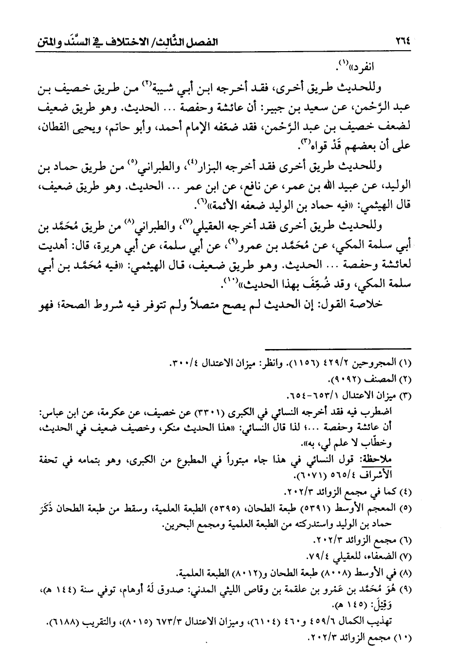 وللحديث طريق أخرى فقد أخرجه العقيلي (¬7)، والطبراني (¬8) من طريق مُحَمَّد بن أبي سلمة المكي، عن مُحَمَّد بن عمرو (¬9)، عن أبي سلمة، عن أبي هريرة، قال: أهديت لعائشة وحفصة ... الحديث. وهو طريق ضعيف، قال الهيثمي: ((فيه مُحَمَّد بن أبي سلمة المكي، وقد ضُعِّفَ بهذا الحديث)) (¬10).