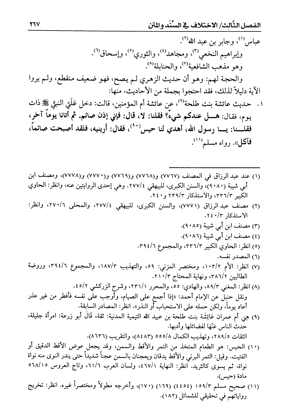 1 - حديث عائشة بنت طلحة (¬9)، عن عائشة أم المؤمنين، قالت: دخل عَلَيَّ النبيُّ - صلى الله عليه وسلم - ذات يوم، فقال: هل عندكم شيءٌ؟ فقلنا: لا، قال: فإني إذن صائم. ثم أتانا يوماً آخر، فقلنا: يا رسول الله، أهدي لنا حيس (¬10)، فقال: أَرينيه، فلقد أصبحت صائماً، فأكل)). رواه مسلم (¬11).