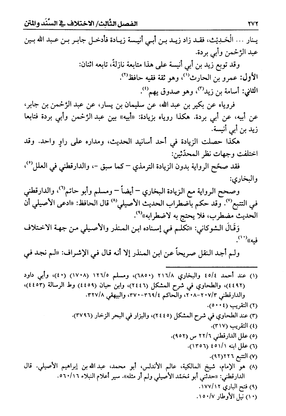 وصحح الرواية مع الزيادة البخاري - أيضاً - ومسلم وأبو حاتم (¬6)، والدارقطني في التتبع (¬7). وقد حكم باضطراب الحديث الأصيلي (¬8) قال الحافظ: ((أدعى الأصيلي أن الحديث مضطرب، فلا يحتج به لاضطرابه)) (¬9).
