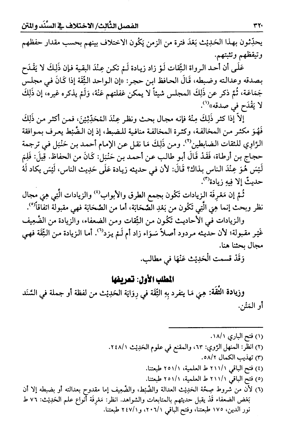 إلاّ إذا كثر ذَلِكَ مِنْهُ فإنه مجال بحث ونظر عِنْدَ المُحَدِّثِيْنَ، فمن أكثر من ذَلِكَ فَهُوَ مكثر من المخالفة، وكثرة المخالفة منافية للضبط، إذ إن الضَّبْط يعرف بموافقة الرَّاوِي للثقات الضابطين (¬2). ومن ذَلِكَ مَا نقل عن الإمام أحمد بن حَنْبَل في ترجمة حجاج بن أرطاة، فَقَدْ قَالَ أبو طالب عن أحمد بن حَنْبَل: كَانَ من الحفاظ. قِيلَ: فَلِمَ لَيْسَ هُوَ عِنْدَ الناس بذاك؟ قَالَ: لأن في حديثه زيادة عَلَى حَدِيث الناس، لَيْسَ يكاد لَهُ حديثٌ إلا فِيهِ زيادة (¬3).