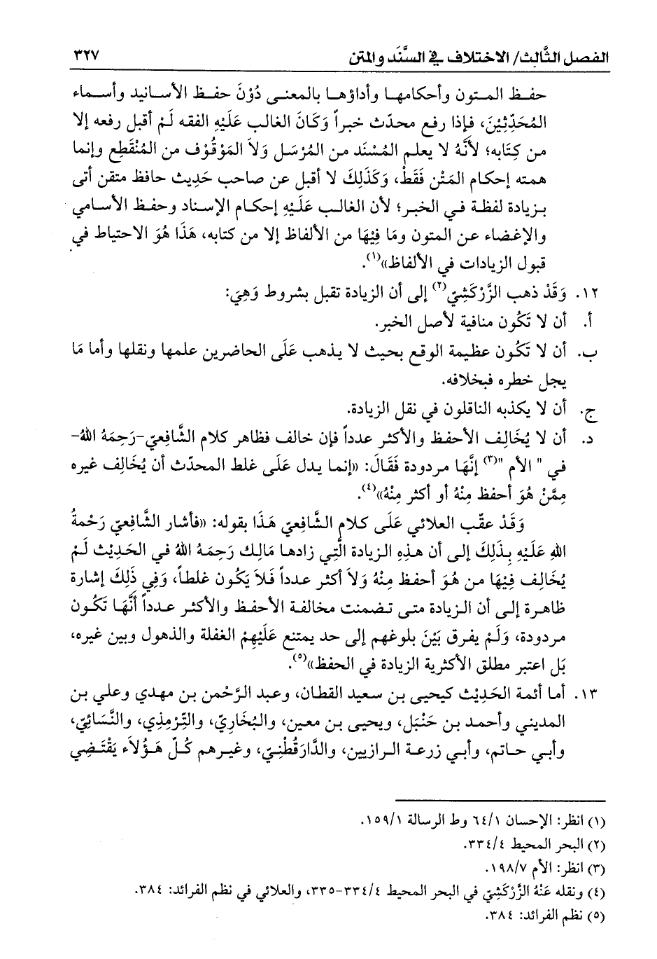 12 - وَقَدْ ذهب الزَّرْكَشِيّ (¬2) إلى أن الزيادة تقبل بشروط وَهِيَ: