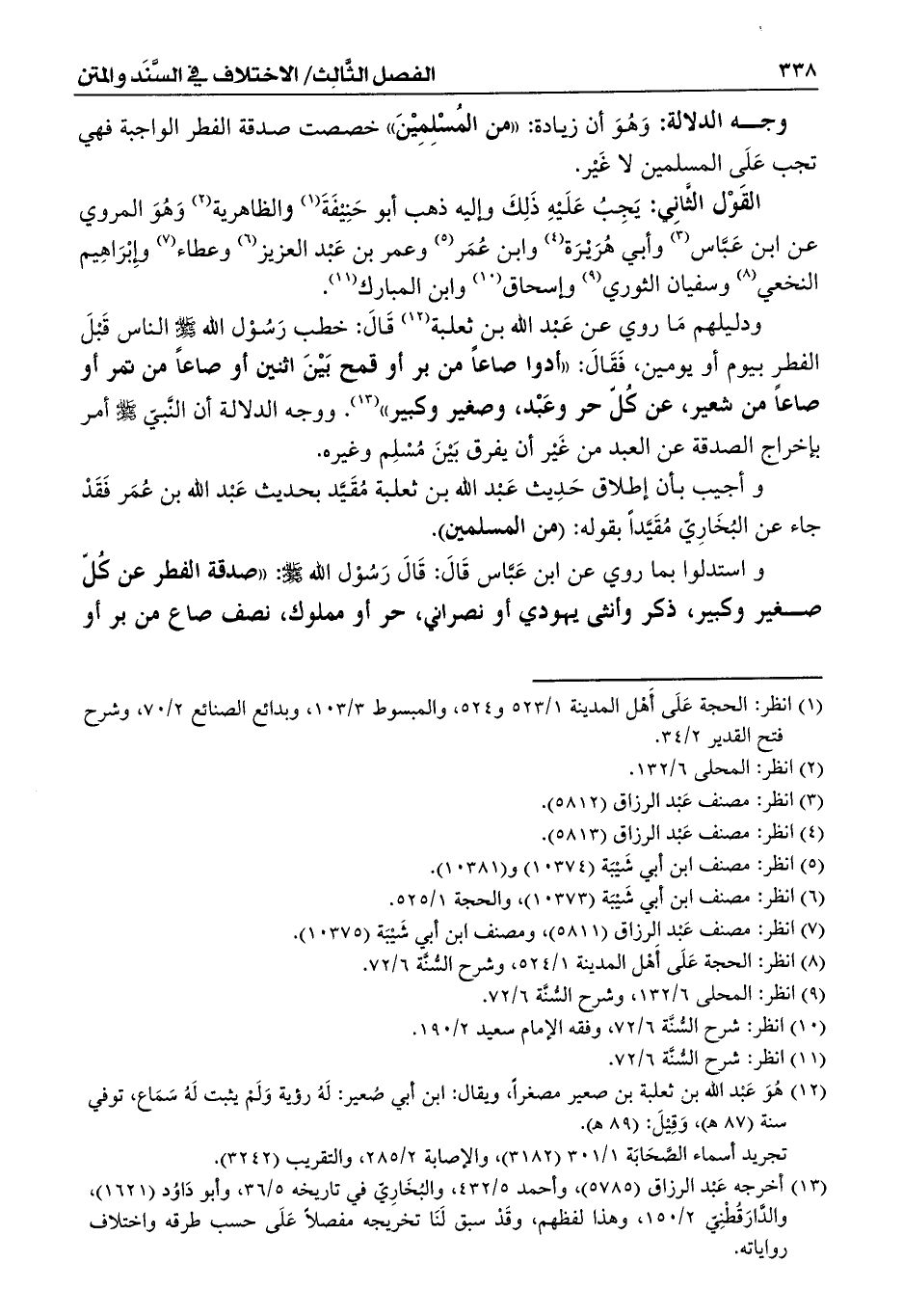 ودليلهم مَا روي عن عَبْد الله بن ثعلبة (¬12) قَالَ: خطب رَسُوْل الله - صلى الله عليه وسلم - الناس قَبْلَ الفطر بيوم أو يومين، فَقَالَ: ((أدوا صاعاً من بر أو قمح بَيْنَ اثنين أو صاعاً من تمر أو صاعاً من شعير، عن كُلّ حر وعَبْد، وصغير وكبير)) (¬13). ووجه الدلالة أن النَّبيّ - صلى الله عليه وسلم - أمر بإخراج الصدقة عن العبد من غَيْر أن يفرق بَيْنَ مُسْلِم وغيره.