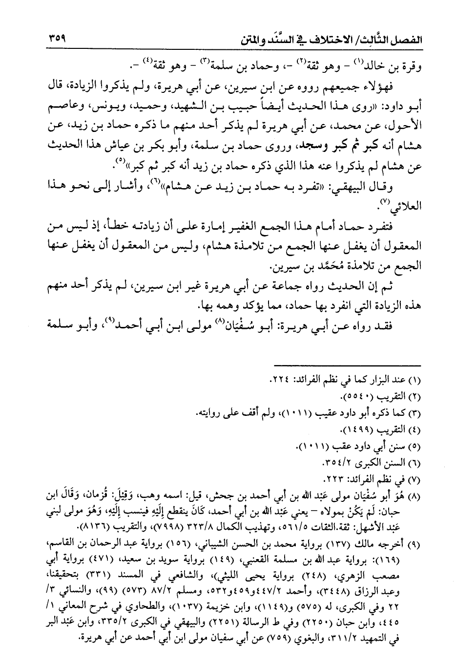 فتفرد حماد أمام هذا الجمع الغفير إمارة على أن زيادته خطأ، إذ ليس من المعقول أن يغفل عنها الجمع من تلامذة هشام، وليس من المعقول أن يغفل عنها الجمع من تلامذة مُحَمَّد بن سيرين.