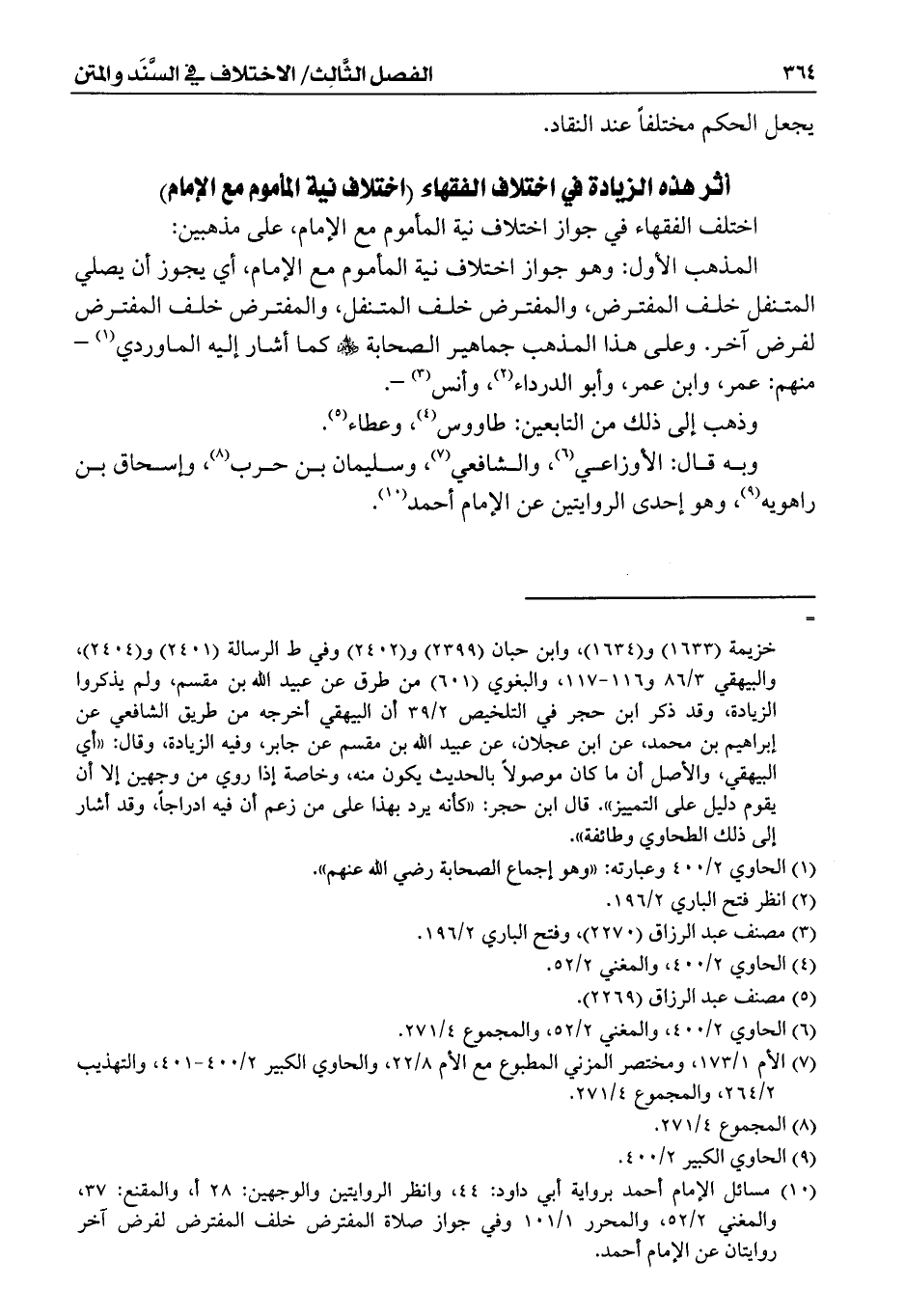 (¬10) مسائل الإمام أحمد برواية أبي داود: 44، وانظر الروايتين والوجهين: 28 أ، والمقنع: 37، والمغني 2/ 52، والمحرر 1/ 101 وفي جواز صلاة المفترض خلف المفترض لفرض آخر روايتان عن الإمام أحمد.