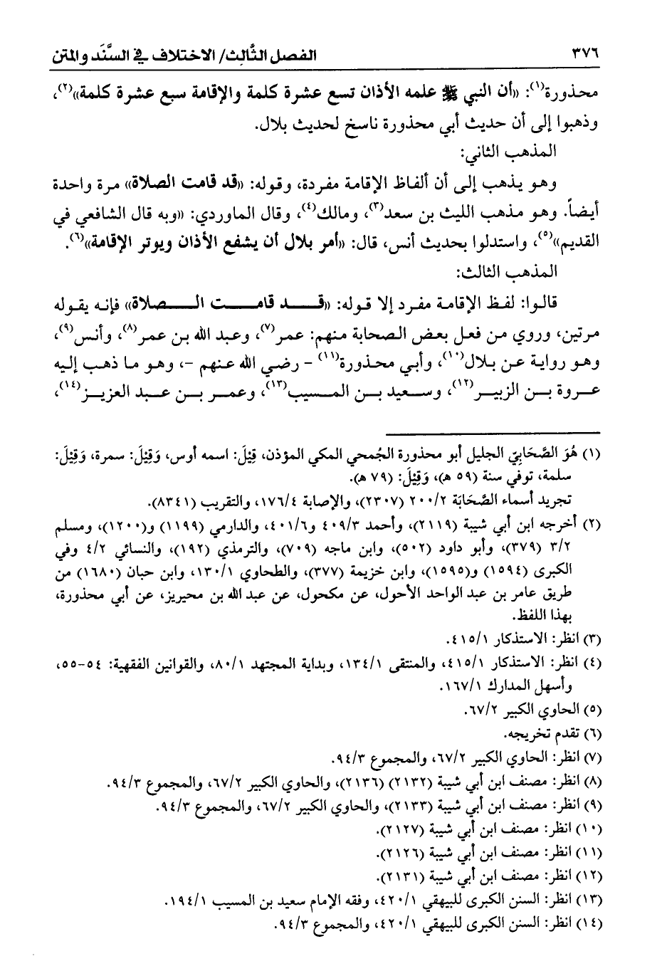 (¬14) انظر: السنن الكبرى للبيهقي 1/ 420، والمجموع 3/ 94.