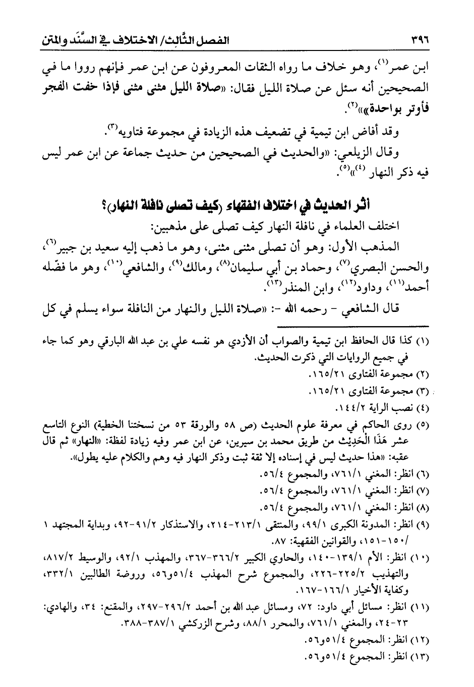 أثر الحديث في اختلاف الفقهاء (كيف تصلى نافلة النهار)؟