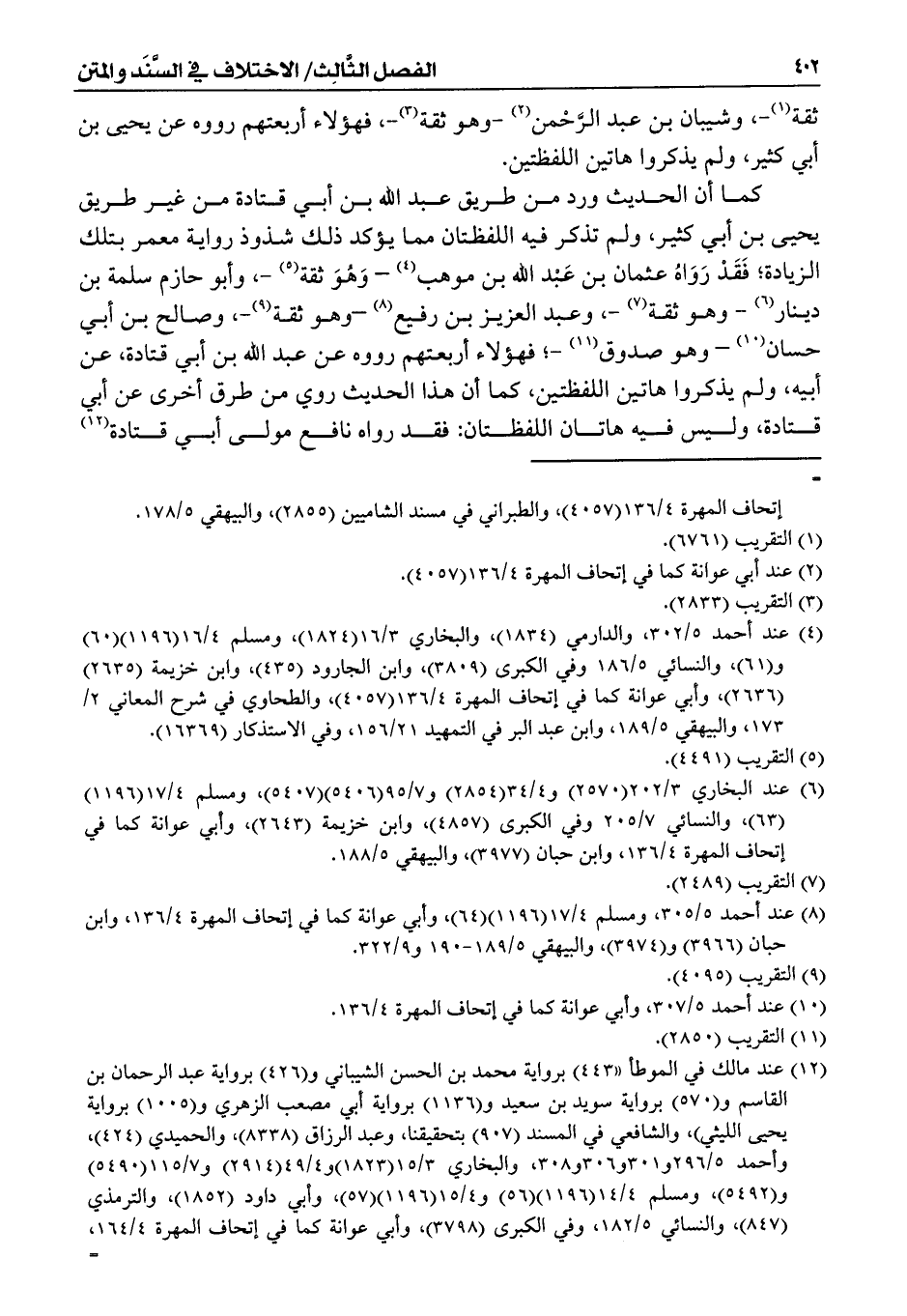 ثقة (¬1) -، وشيبان بن عبد الرحمان (¬2) -وهو ثقة (¬3) -، فهؤلاء أربعتهم رووه عن يحيى بن أبي كثير، ولم يذكروا هاتين اللفظتين.