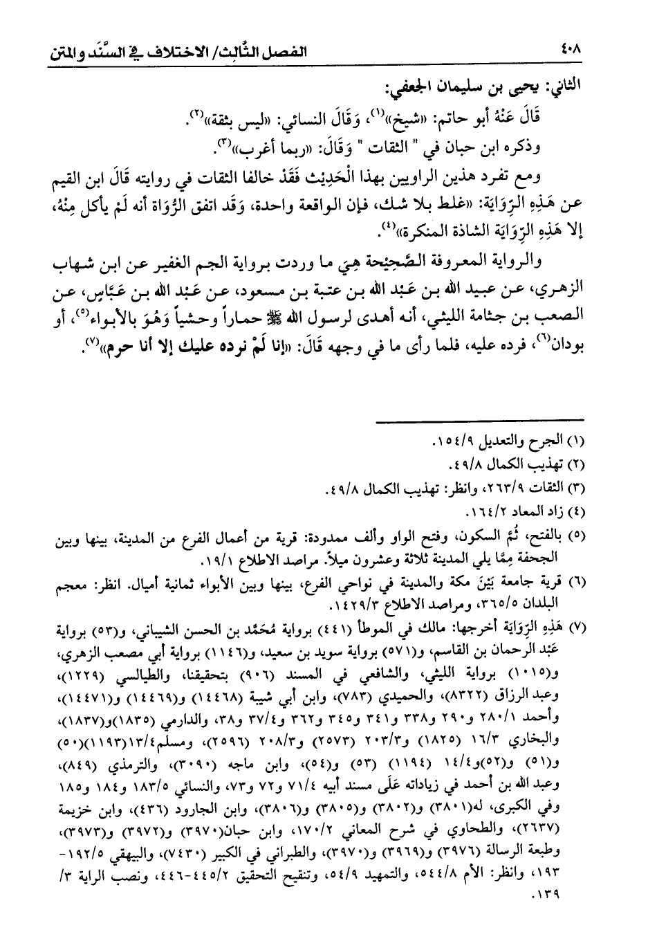 (¬7) هَذِهِ الرِّوَايَة أخرجها: مالك في الموطأ ((441) برواية مُحَمَّد بن الحسن الشيباني، و (53) برواية عَبْد الرحمان بن القاسم، و (571) برواية سويد بن سعيد، و (1146) برواية أبي مصعب الزهري، و (1015) برواية لليثي)، والشافعي في المسند (906) بتحقيقنا، والطيالسي (1229)، وعبد الرزاق (8322)، والحميدي (783)، وابن أبي شيبة (14468) و (14469) و (14471)، وأحمد 1/ 280 و 290 و 338 و 341 و 345 و 362 و 4/ 37 و 38، والدارمي (1835) و (1837)، والبخاري 3/ 16 (1825) و3/ 203 (2573) و 3/ 208 (2596)، ومسلم4/ 13 (1193) (50) و (51) و (52) و4/ 14 (1194) (53) و (54)، وابن ماجه (3090)، والترمذي (849)، وعبد الله بن أحمد في زياداته عَلَى مسند أبيه 4/ 71 و 72 و 73، والنسائي 5/ 183 و 184 و 185 وفي الكبرى، له (3801) و (3802) و (3805) و (3806)، وابن الجارود (436)، وابن خزيمة (2637)، والطحاوي في شرح المعاني 2/ 170، وابن حبان (3970) و (3972) و (3973)، وطبعة الرسالة (3976) و (3969) و (3970)، والطبراني في الكبير (7430)، والبيهقي 5/ 192 - 193، وانظر: الأم 8/ 544، والتمهيد 9/ 54، وتنقيح التحقيق 2/ 445 - 446، ونصب الراية 3/ 139.