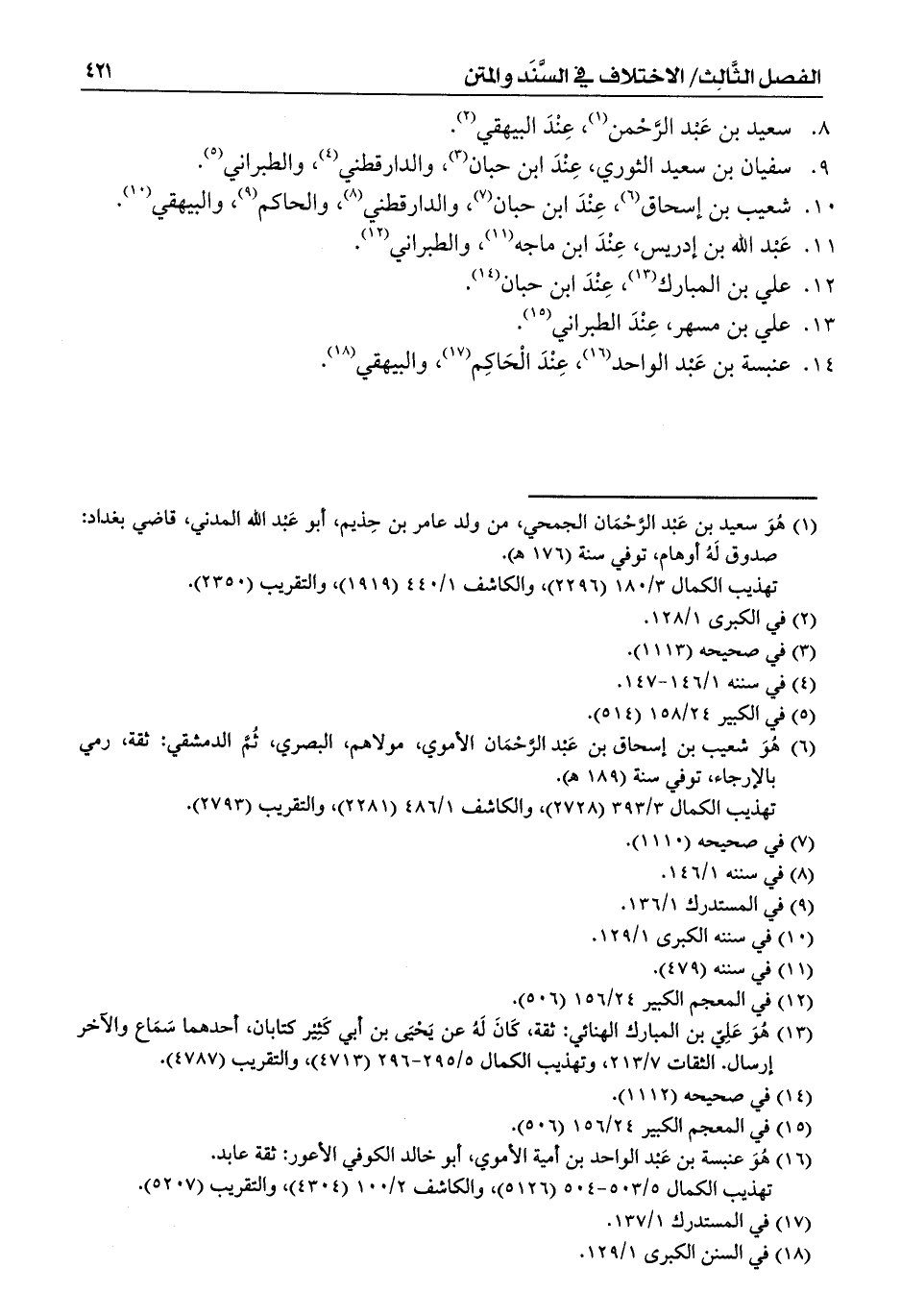 (¬13) هُوَ عَلِيّ بن المبارك الهنائي: ثقة، كَانَ لَهُ عن يَحْيَى بن أبي كَثِيْر كتابان، أحدهما سَمَاع والآخر إرسال. الثقات 7/ 213، وتهذيب الكمال 5/ 295 - 296 (4713)، والتقريب (4787).