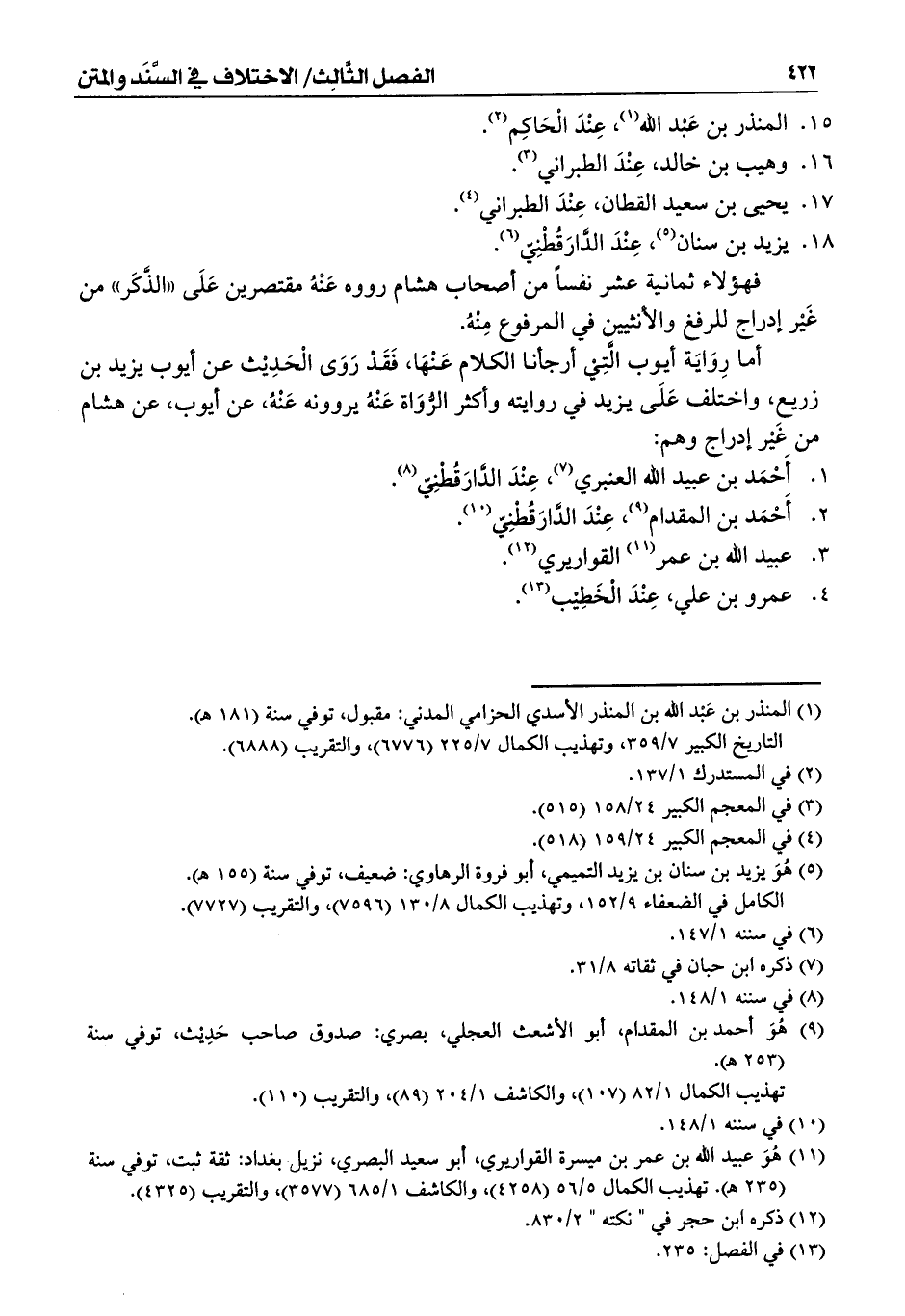فهؤلاء ثمانية عشر نفساً من أصحاب هشام رووه عَنْهُ مقتصرين عَلَى ((الذَّكَر)) من غَيْر إدراج للرفغ والأنثيين في المرفوع مِنْهُ.