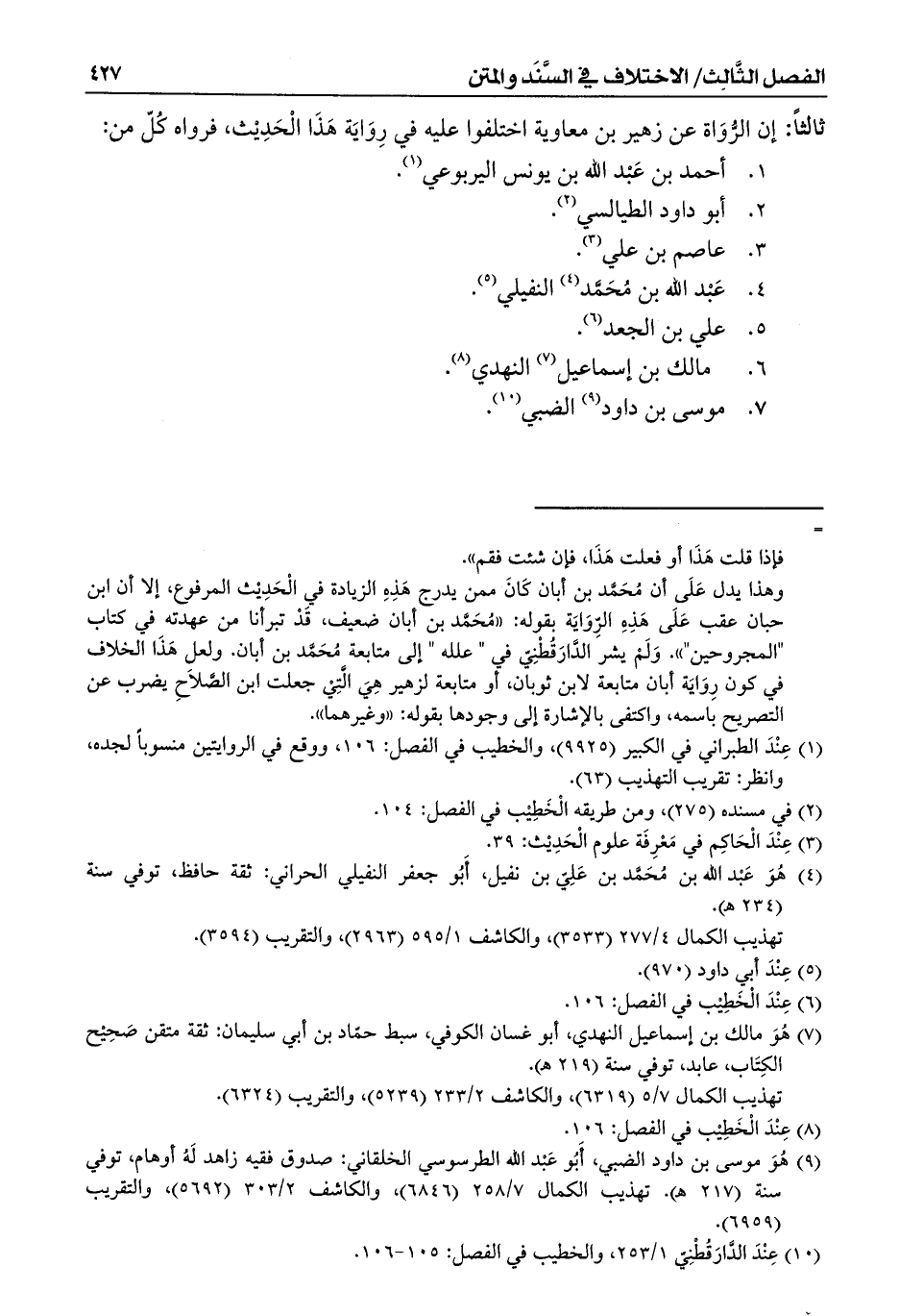 ثالثاً: إن الرُّوَاة عن زهير بن معاوية اختلفوا عليه في رِوَايَة هَذَا الْحَدِيْث، فرواه كُلّ من: