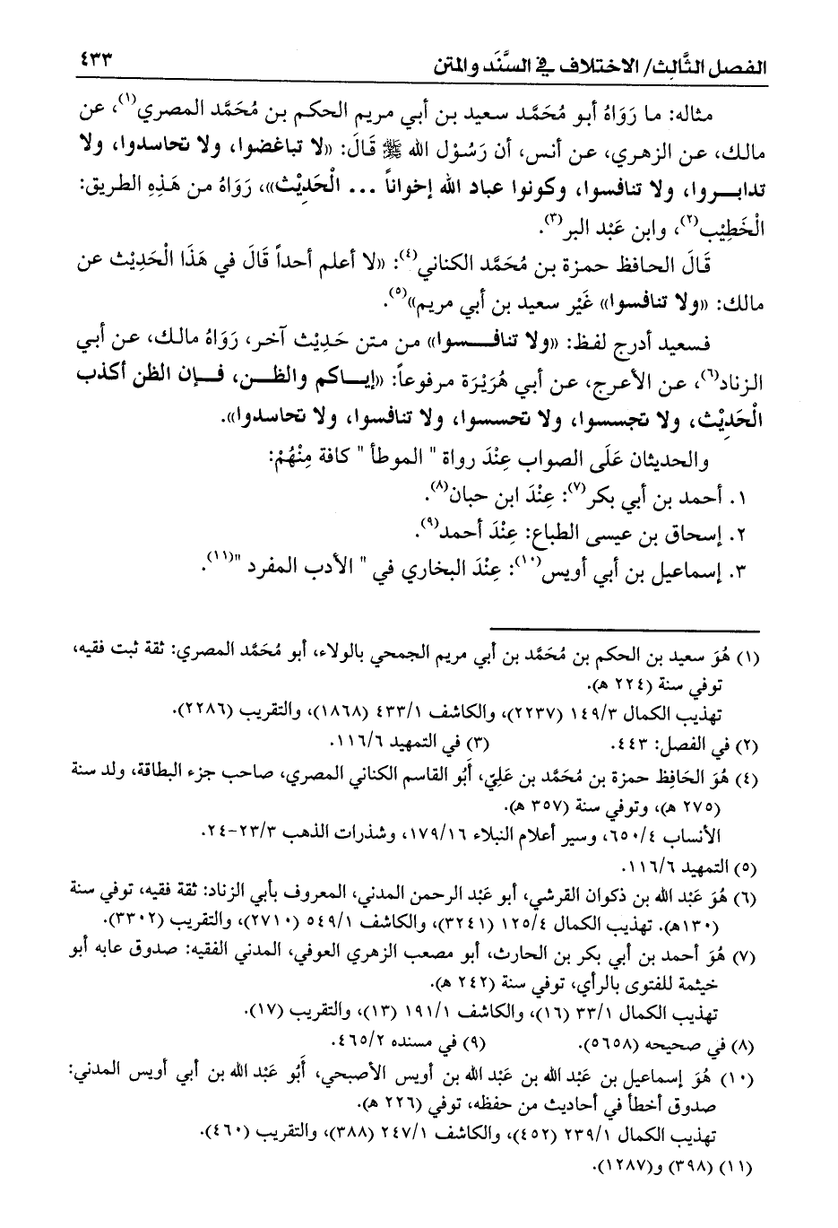 قَالَ الحافظ حمزة بن مُحَمَّد الكناني (¬4): ((لا أعلم أحداً قَالَ في هَذَا الْحَدِيْث عن مالك: ((ولا تنافسوا)) غَيْر سعيد بن أبي مريم)) (¬5).