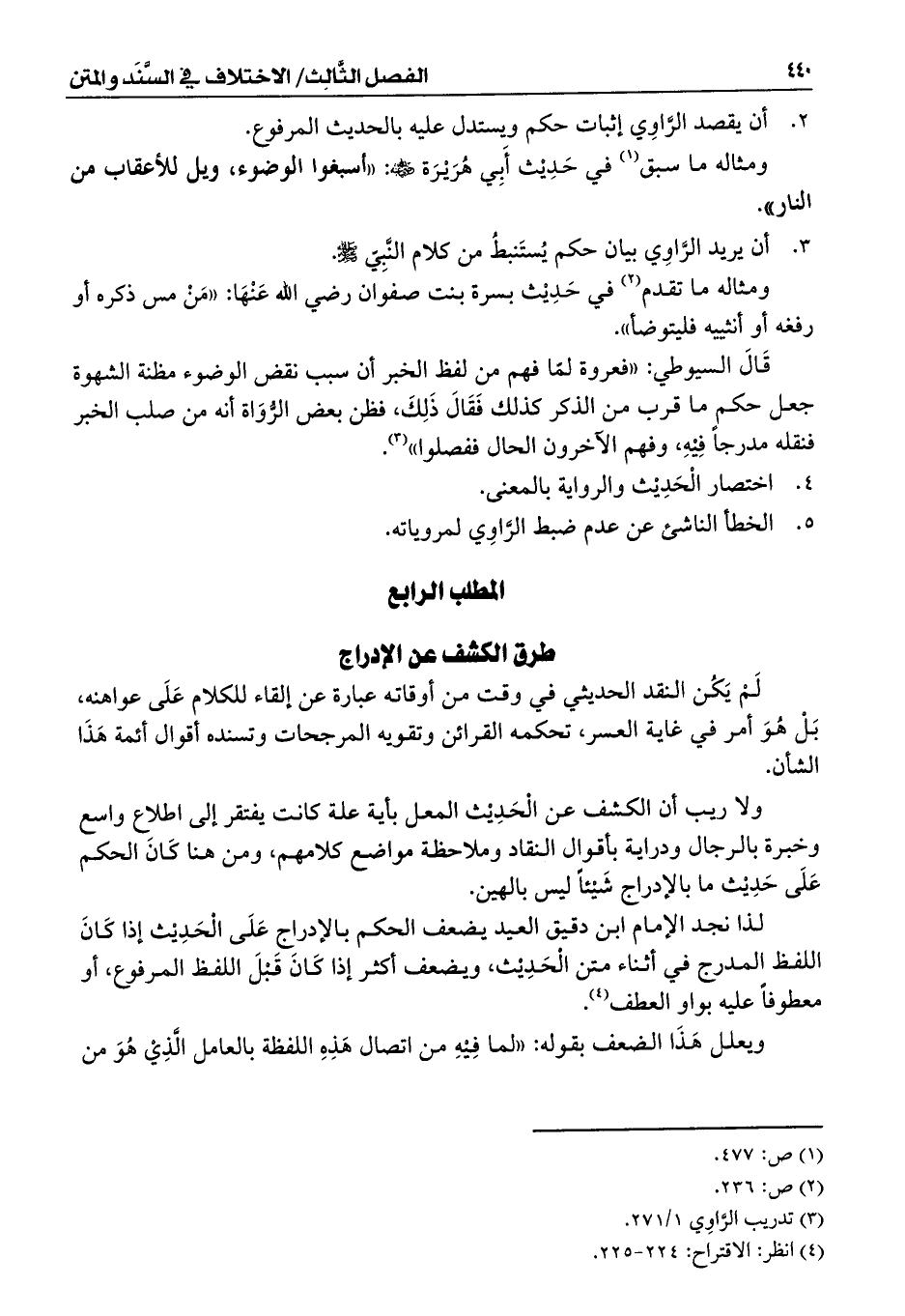ولا ريب أن الكشف عن الْحَدِيْث المعل بأية علة كانت يفتقر إلى اطلاع واسع وخبرة بالرجال ودراية بأقوال النقاد وملاحظة مواضع كلامهم، ومن هنا كَانَ الحكم عَلَى حَدِيْث ما بالإدراج شَيْئاً ليس بالهين.