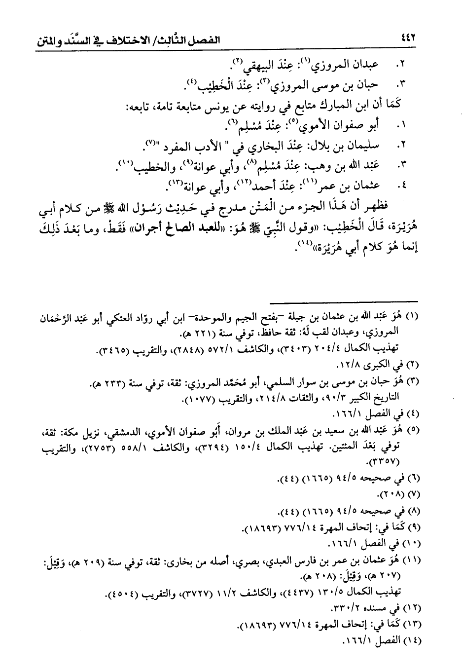 فظهر أن هَذَا الجزء من الْمَتْن مدرج في حَدِيْث رَسُوْل الله - صلى الله عليه وسلم - من كلام أبي هُرَيْرَة، قَالَ الْخَطِيْب: ((وقول النَّبِيّ - صلى الله عليه وسلم - هُوَ: ((للعبد الصالح أجران)) فَقَطْ، وما بَعْدَ ذَلِكَ إنما هُوَ كلام أبي هُرَيْرَة)) (¬14).