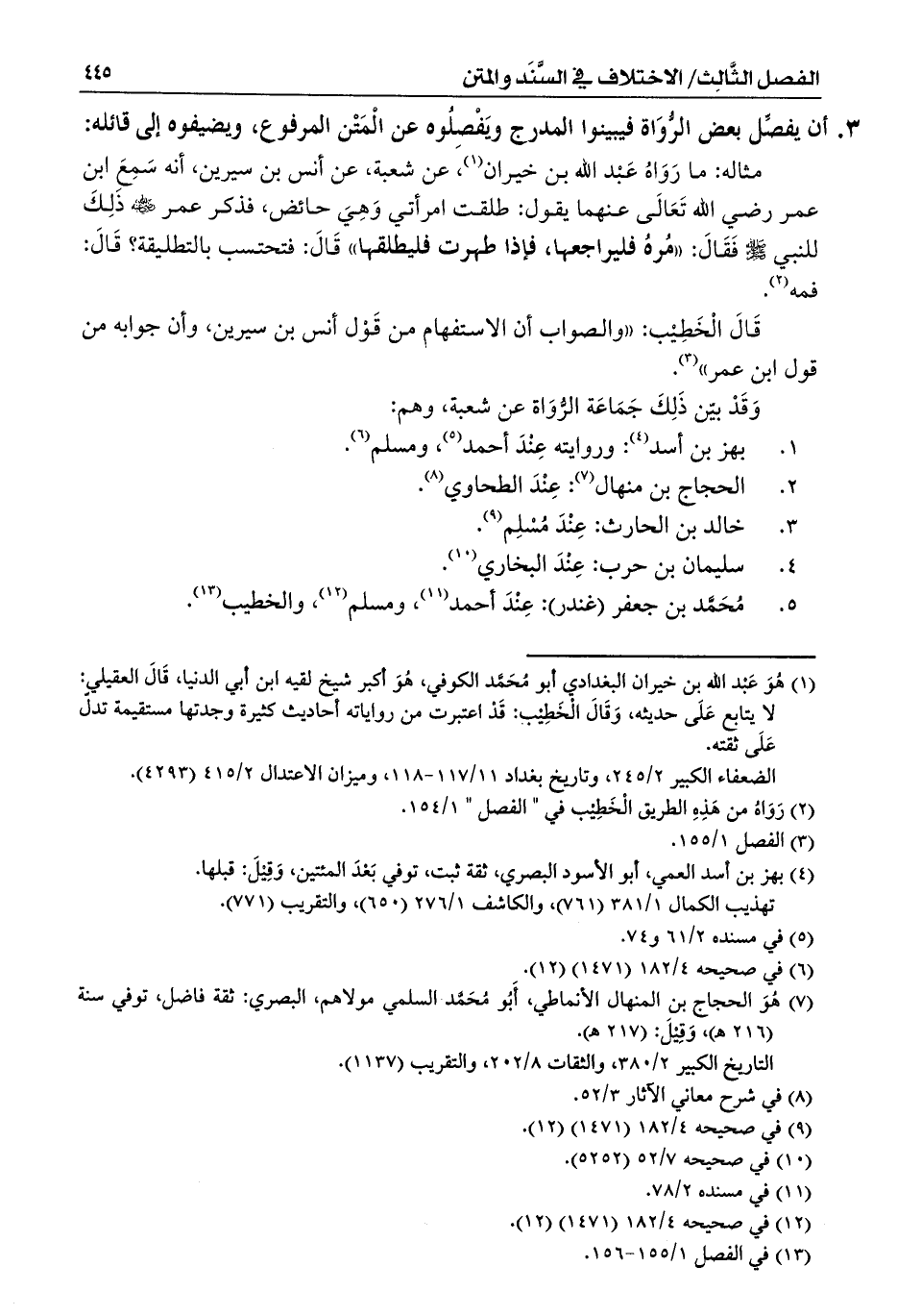 3 - أن يفصِّل بعض الرُّوَاة فيبينوا المدرج ويَفْصِلُوه عن الْمَتْن المرفوع، ويضيفوه إلى قائله:
