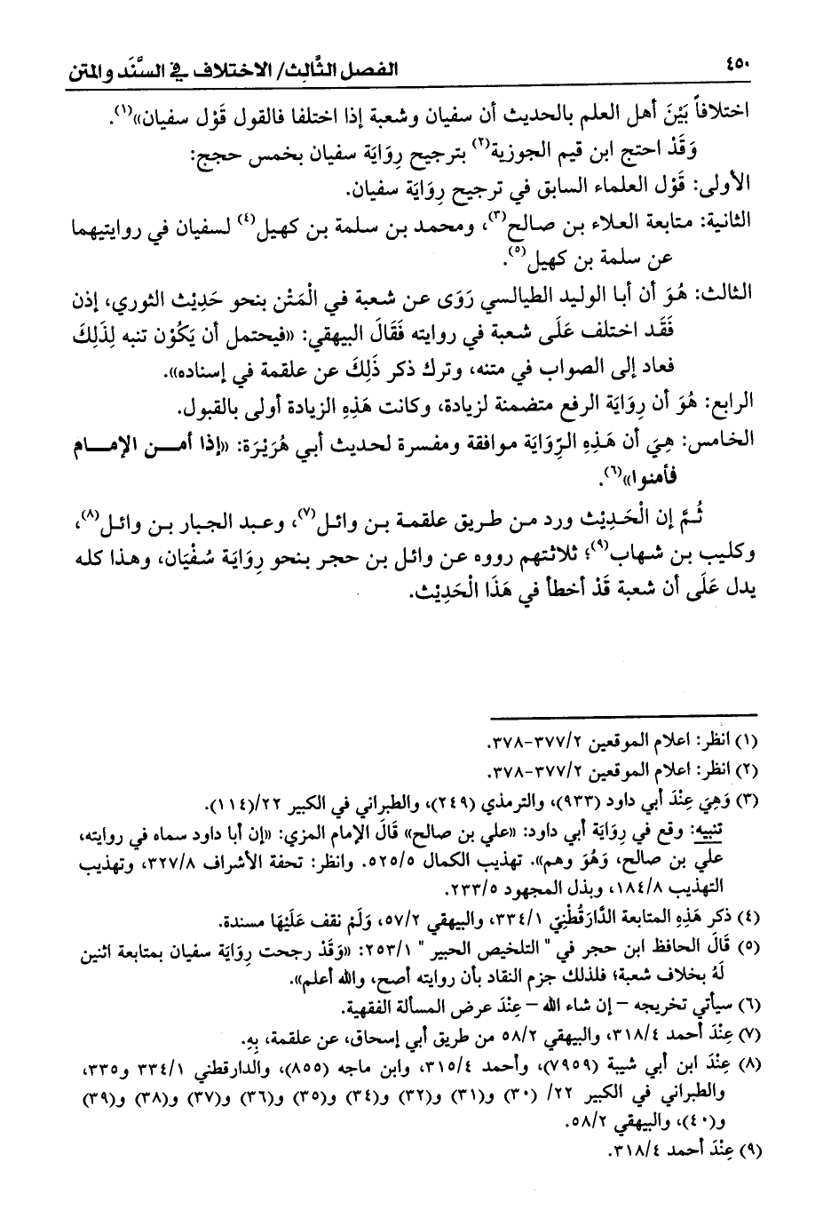 (¬5) قَالَ الحافظ ابن حجر في " التلخيص الحبير " 1/ 253: ((وَقَدْ رجحت رِوَايَة سفيان بمتابعة اثنين لَهُ بخلاف شعبة؛ فلذلك جزم النقاد بأن روايته أصح، والله أعلم)).