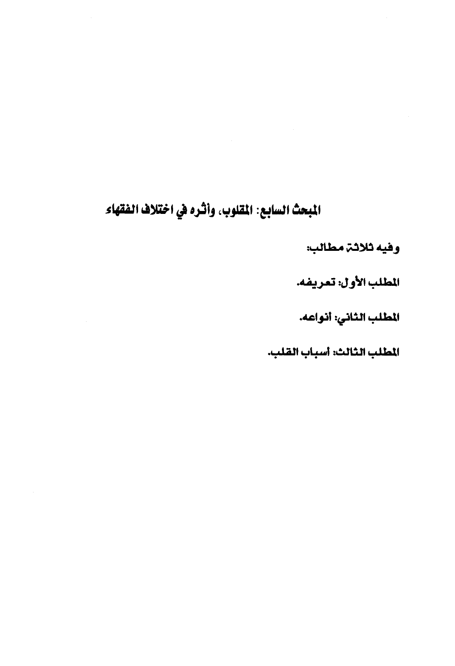 المبحث السابع: المقلوب، وأثره في اختلاف الفقهاء
