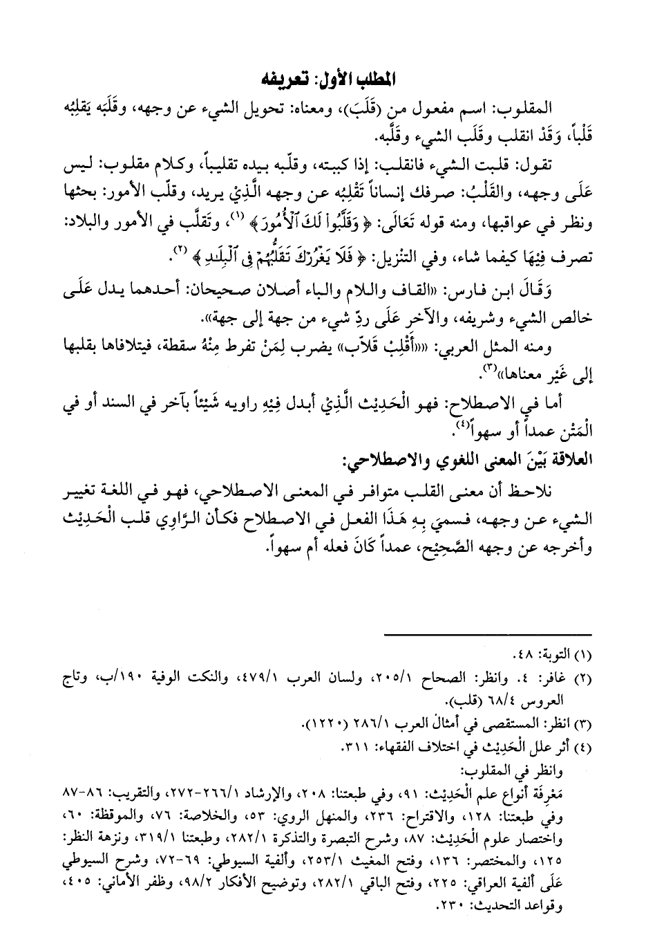 أما في الاصطلاح: فهو الْحَدِيْث الَّذِيْ أبدل فِيْهِ راويه شَيْئاً بآخر في السند أو في الْمَتْن عمداً أو سهواً (¬4).