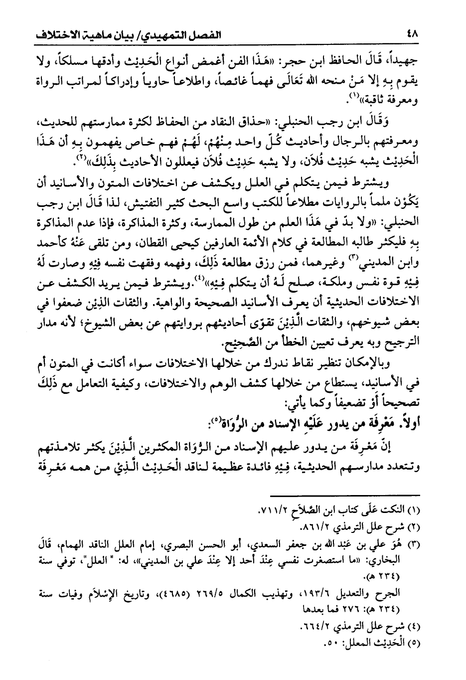 جهيداً، قَالَ الحافظ ابن حجر: ((هَذَا الفن أغمض أنواع الْحَدِيْث وأدقها مسلكاً، ولا يقوم بِهِ إلا مَنْ منحه الله تَعَالَى فهماً غائصاً، واطلاعاً حاوياً وإدراكاً لمراتب الرواة ومعرفة