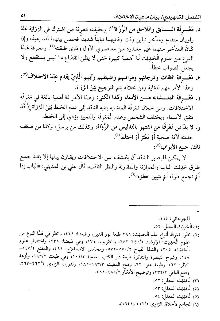 و. مَعْرِفَة المتشابه من الأسماء وكذا الكنى: وهذا الأمر لَهُ أهمية بالغة في مَعْرِفَة الاختلافات. ومن خلال مَعْرِفَة المتشابه يتنبه الناقد إلى عدم الخلط بَيْنَ الرُّوَاة إِذْ قَدْ تتفق الأسماء ويختلف الشخص وعدم الْمَعْرِفَة والتمييز يؤدي إلى الخلط.