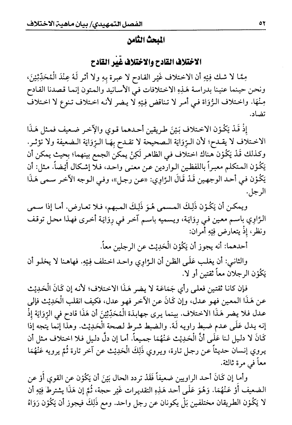 مِمَّا لا شك فِيْهِ أن الاختلاف غَيْر القادح لا عبرة بِهِ ولا أثر لَهُ عِنْدَ الْمُحَدِّثِيْنَ، ونحن حينما عنينا بدراسة هَذِهِ الاختلافات في الأسانيد والمتون إنما قصدنا القادح مِنْهَا. واختلاف الرُّوَاة في أمر لا تناقض فِيْهِ لا يضر لأنه اختلاف تنوع لا اختلاف تضاد.